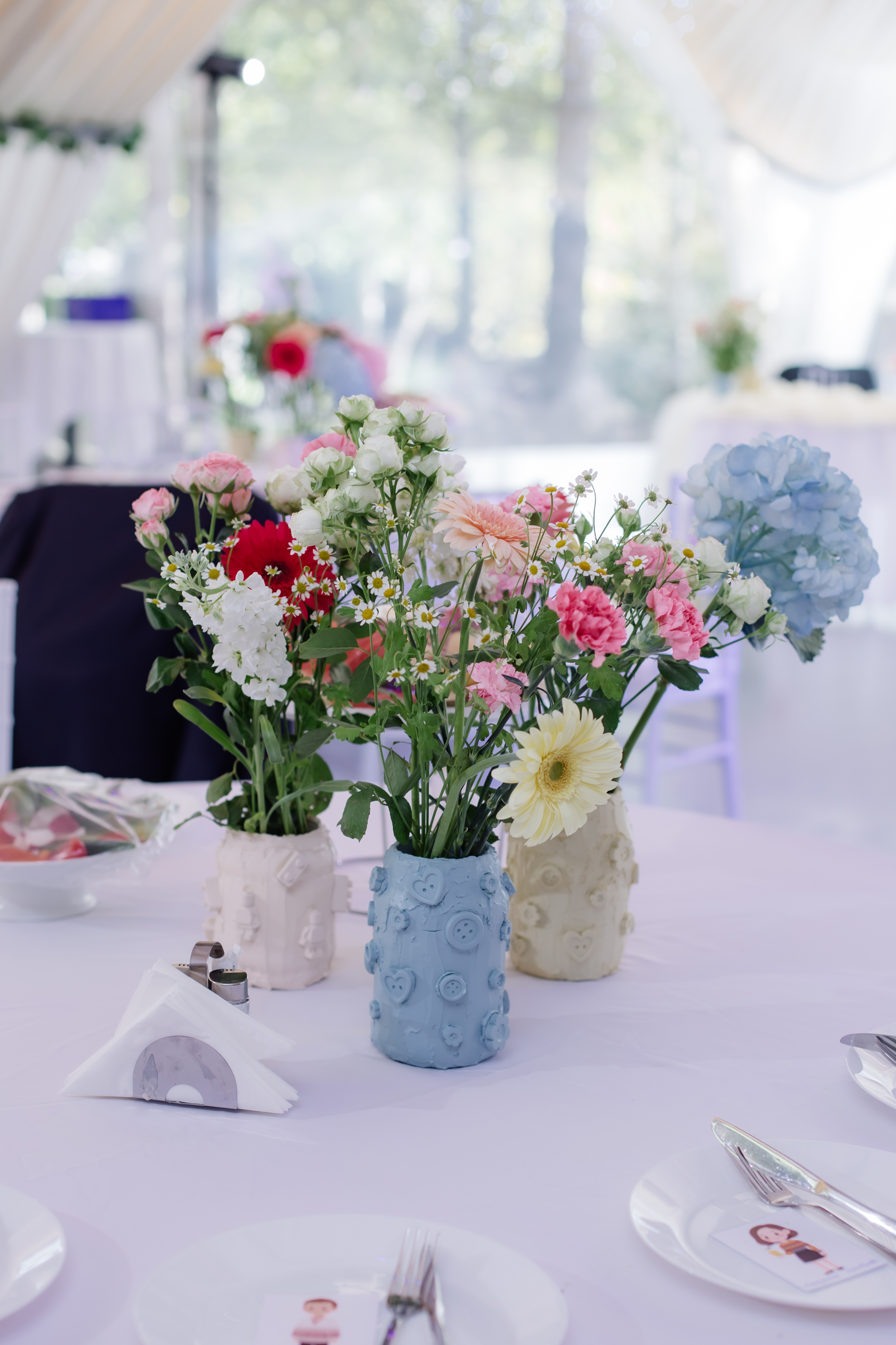 - Декор на столы делали сами с подругами. Живые цветы купили на оптовой цветочной базе за 12 000 ₽ — их хватило на все столы и президиум;