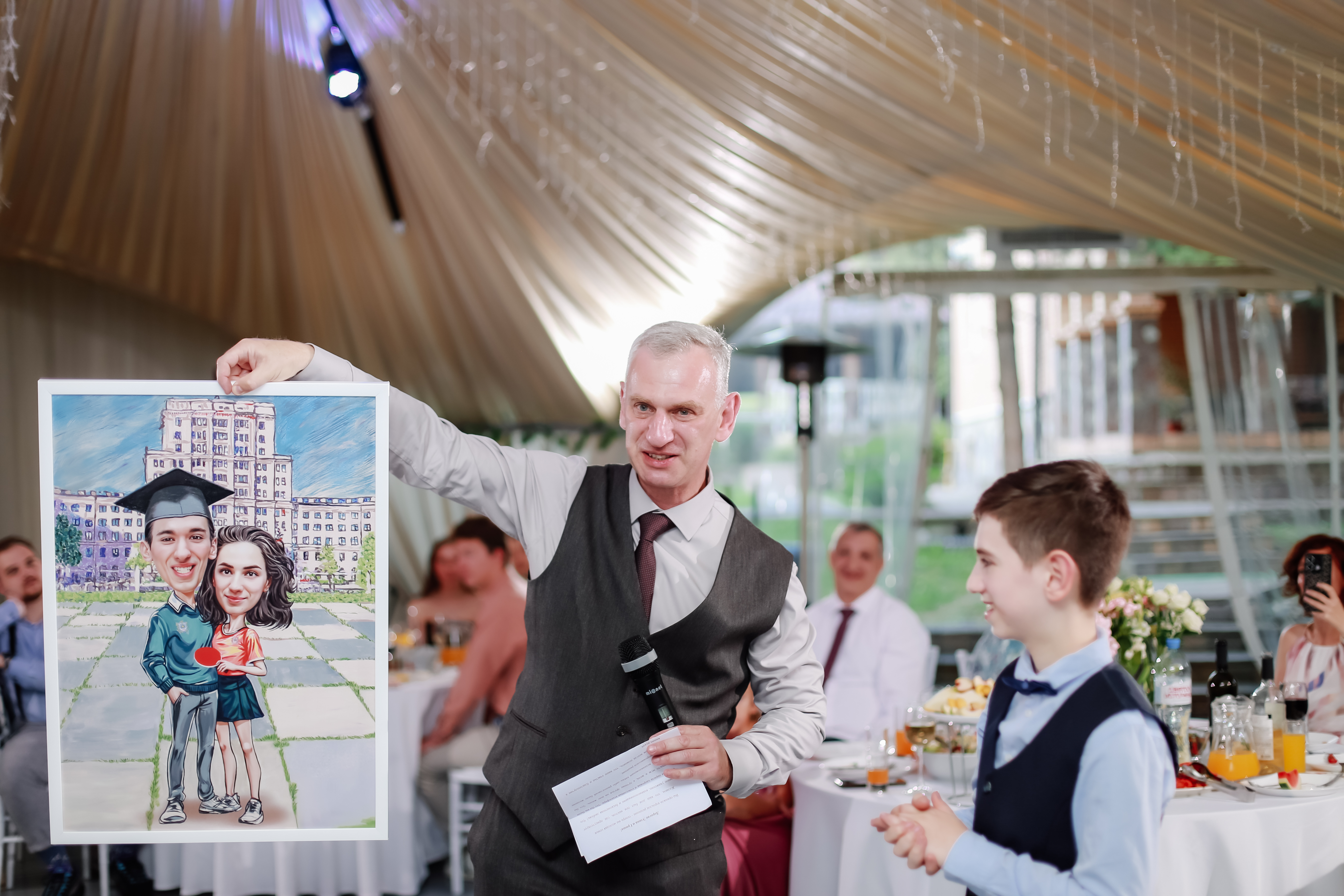 Мои родители также подарили нам большую картину с нашим карикатурным портретом.
