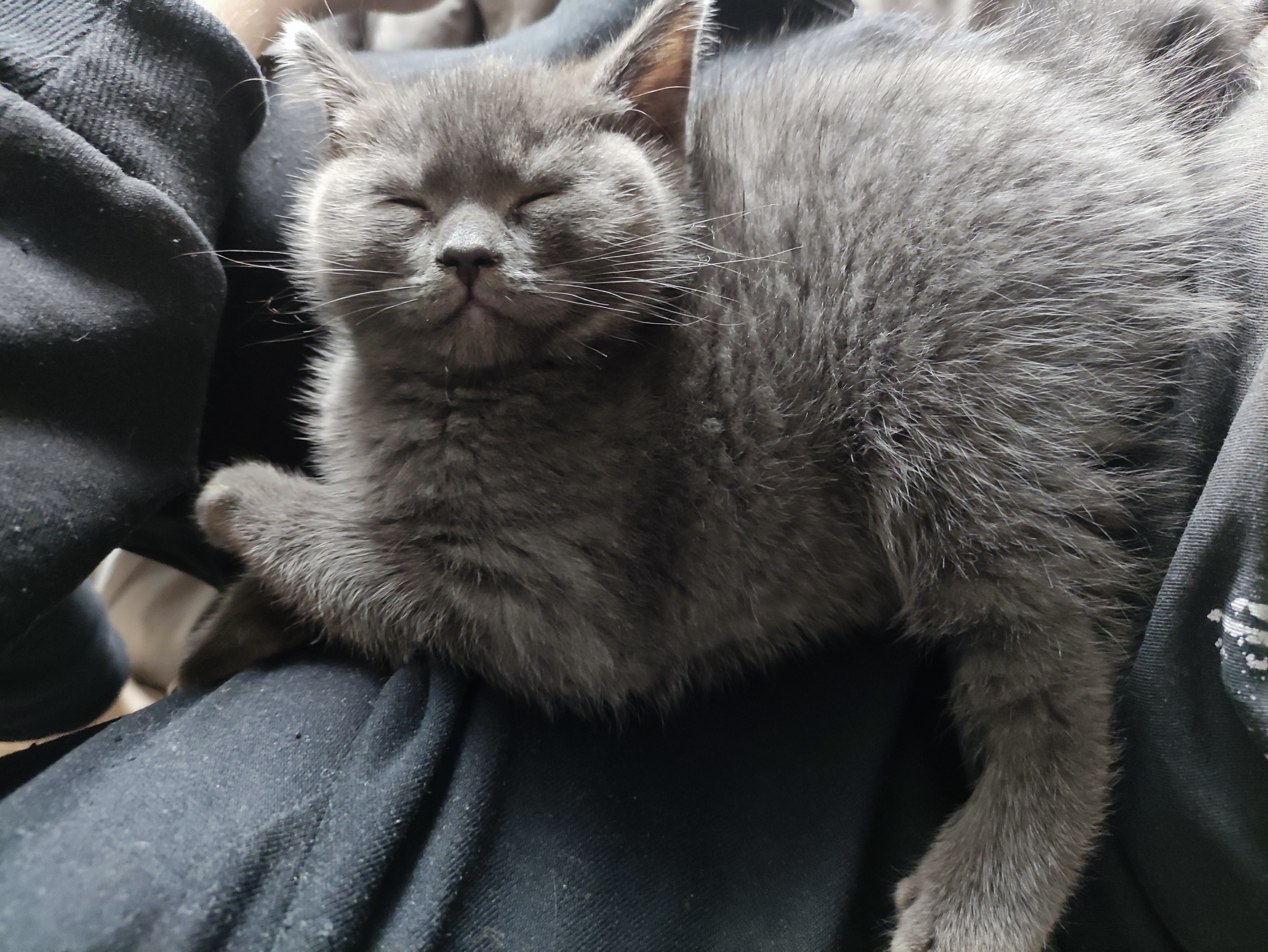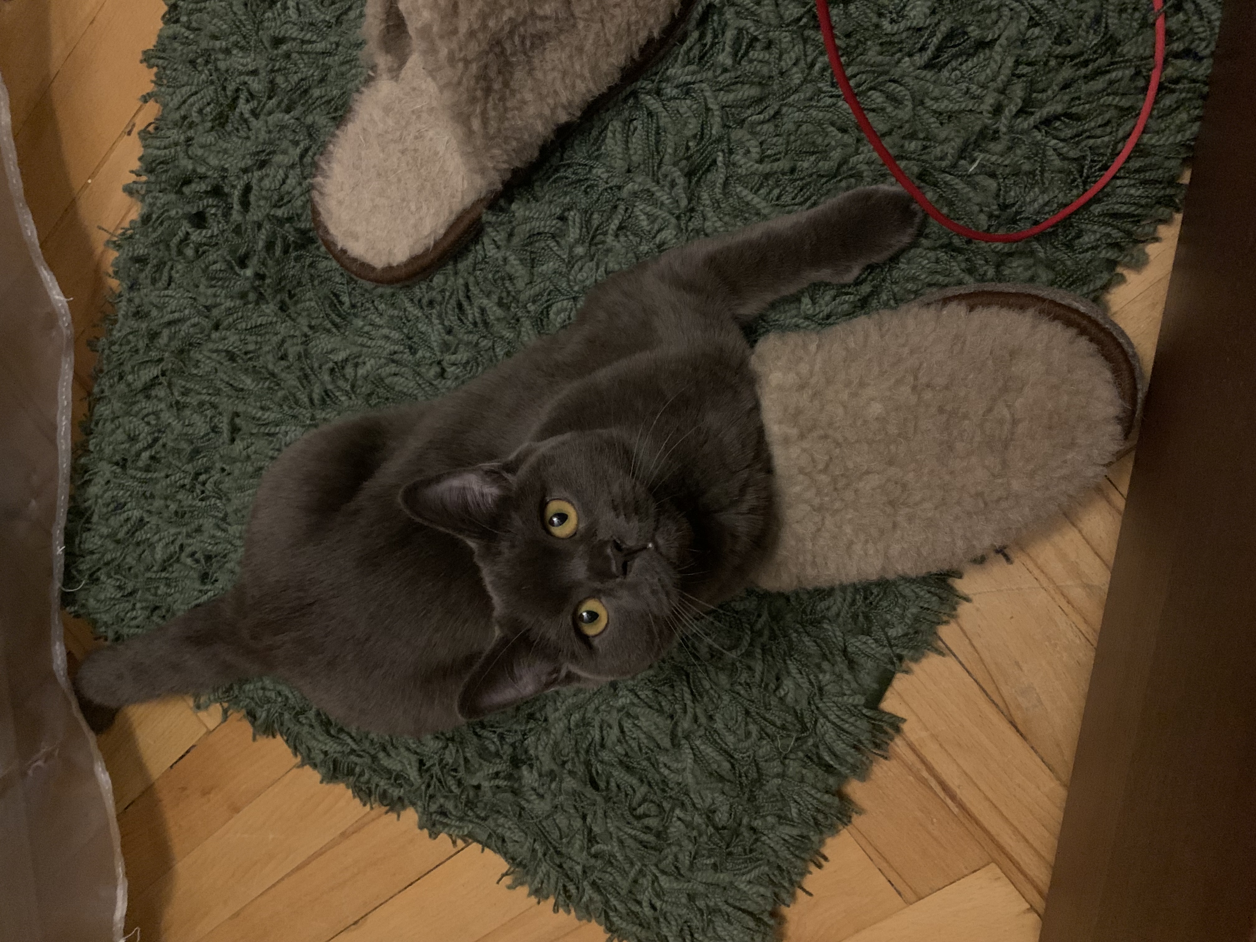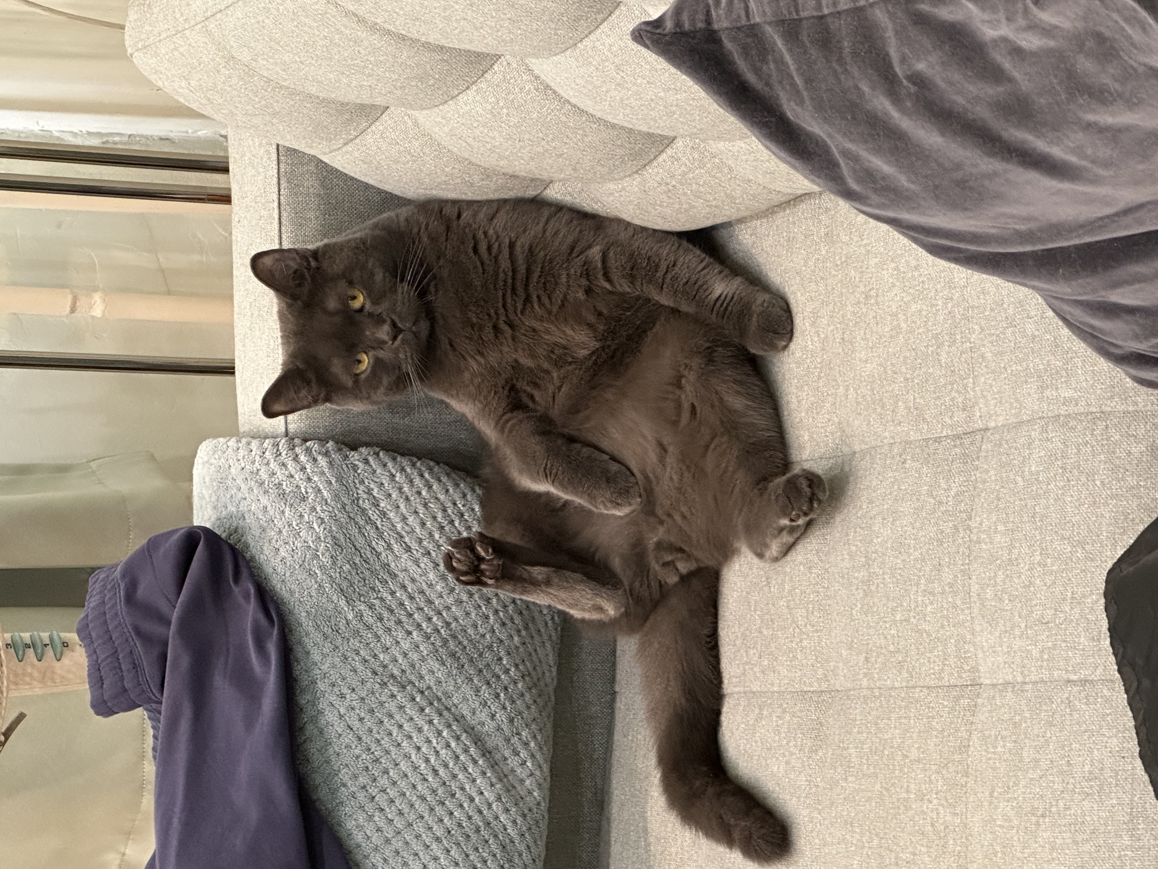 Нашему коту почти 4 года. Думаем, что это метис шотландца с кем-то из дворян. Плюшевая шубка имеется, но щечки не дотягивают до знатных представителей породы. Нашли и забрали на Авито за обещание кормить и любить. Кот активный, игривый, ласковый. Муж научил давать лапку за вкусняшки.