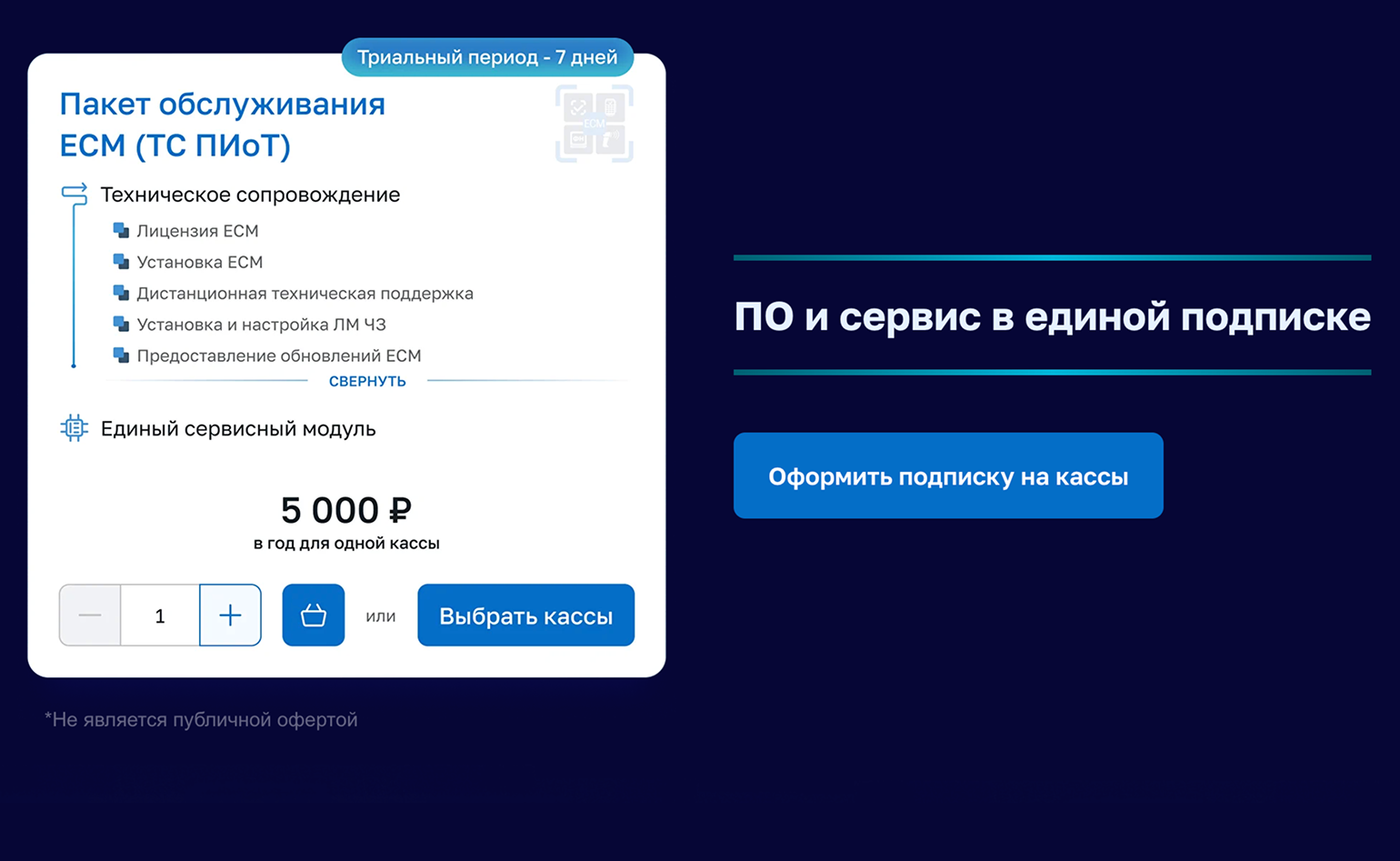 | Подписка на обновления ККТ, лицензия на год | Подключение или продление — от 2 500 до 5 900 ₽, зависит от бренда |