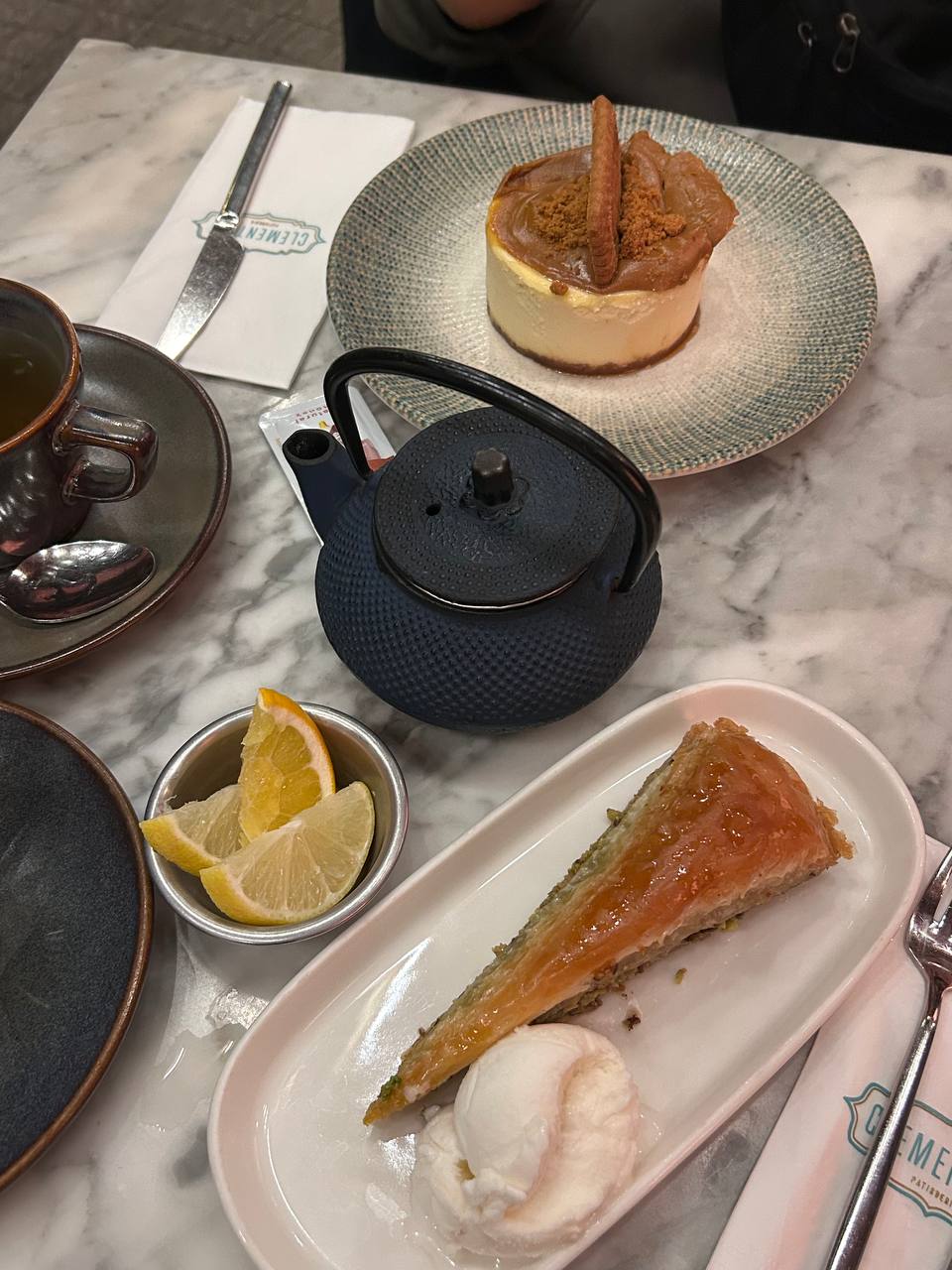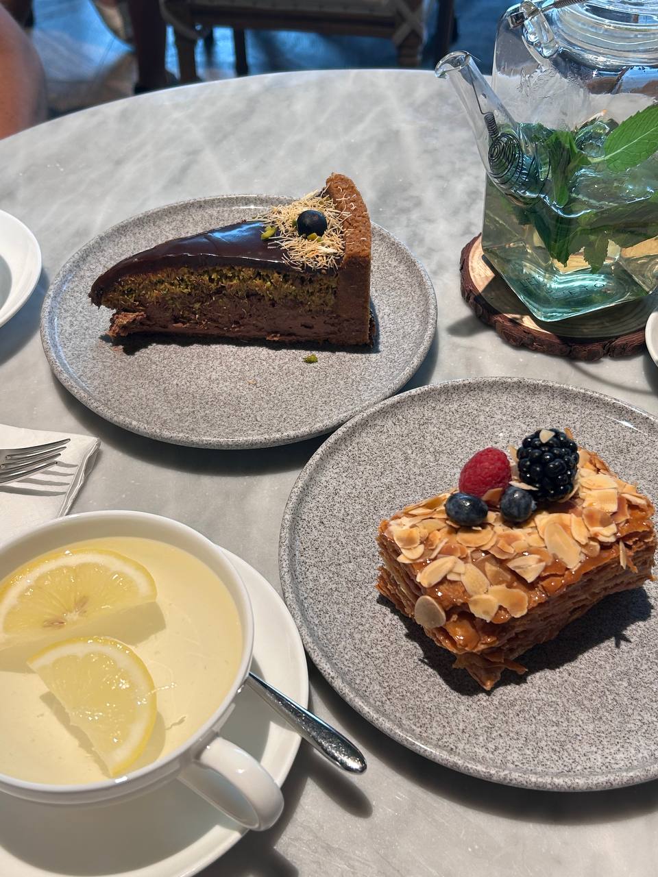 Из заведений мы были в «Angel Cake» (шакшука, авокадо-тост и латте — 4 500 ₽) (кафе основано русскими ребятами, есть в Москве и Питере), в «Angelina» (были там два раза, в среднем за обед из двух основных блюд, двух десертов и чая оставляли 6 000 ₽) и в «L’ETO» (чизкейк, наполеон и чай — 3 300 ₽). Везде было очень вкусно, эстетично и дорого, но вопросов не осталось — мы понимали, за что платим. В отличие от Турции здесь был сервис, подача и чистота. Итого на еду в кафе и супермаркетах мы потратили 39 000 ₽.