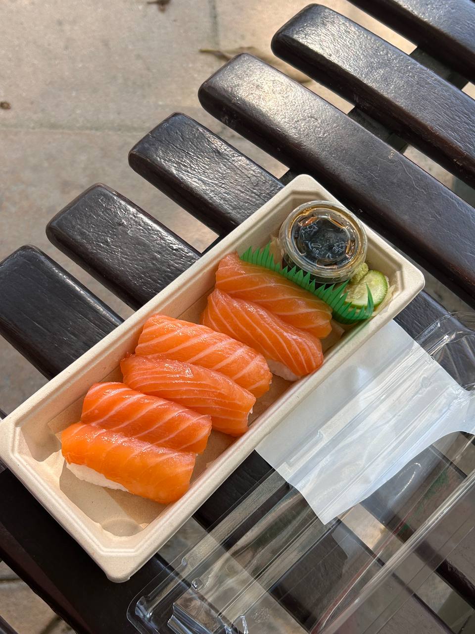 Как итог: за обед на двоих мы оставили 12 000 ₽ (цены были примерно вдвое выше московских + сюда же входил сервисный сбор около 1 500 Р). Сервис, интерьер, чистота, подача — все было на высоте. Было очень спокойно, тихо и уединенно. Также был комплимент в виде большой булки горячего хлеба с маслом и красной икрой, а также закуски с тунцом и клубникой. Все было хорошо, только трюфельные роллы я до сих пор не могу пережить. Заказывая роллы за 4 500 ₽, я ожидала, что они не будут выглядеть как горох, и я смогу получить не только эстетическое удовольствие. На деле было 8 крошечных роллов, которые исчезли через 3 минуты. В какой-то степени было обидно, тк я ими даже не наелась. Также были еще другие роллы (подешевле) такого же размера, два почти безвкусных лимонада (каждый почти за 1 000 ₽), Павлова и тирамису. Тирамису, кстати, понравился, он был вкусный. В целом, мы не пожалели, что сходили в «Сахалин», понятно, что в такие заведения приходят не поесть. Итого за все дни на еду в Стамбуле мы потратили 48 000 ₽.