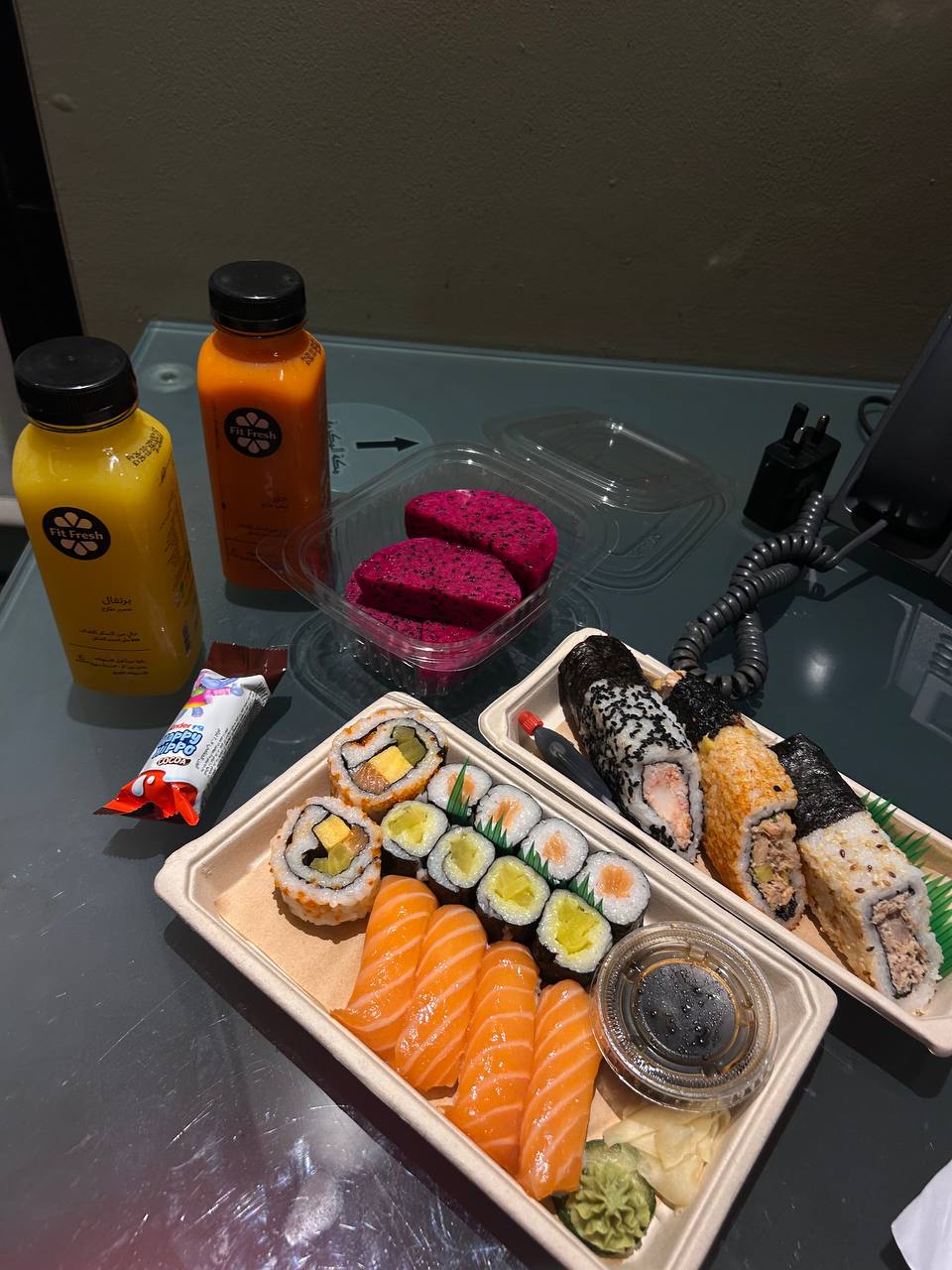 Заведения в Дубае дорогие, но и есть где попало мы были не готовы, поэтому мы каждый день ели в эстетик-кафе и один раз покупали что-то готовое в премиум-супермаркетах по типу нашей «Азбуки» только лучше. Там огромный выбор разной вкусной еды, фрешей и фруктовых нарезок. Мы брали там еду пару раз и остались довольны — роллы вкуснее, чем во многих ресторанах, а по вкуснейшим ананасам я уже скучаю.