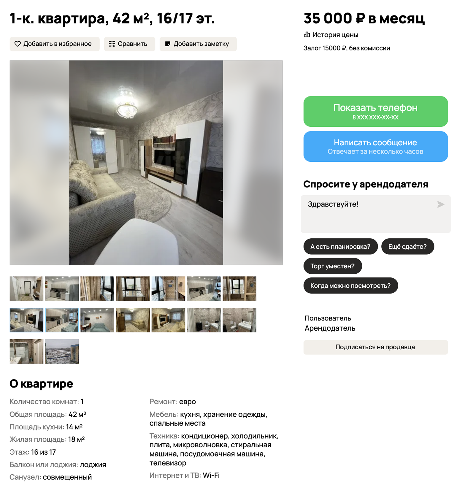 - средняя арендная плата за однушку