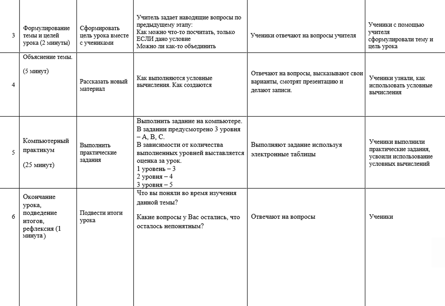 По окончании базового курса ребенок должен понимать, что такое информация и в чем она измеряется, уверенно работать с компьютером, уметь пользоваться текстовым редактором и делать презентации. Также я рассказываю о математической логике, устройстве компьютерных сетей и моделировании объектов, учу составлять простые алгоритмы и программы, анализировать данные в таблицах.