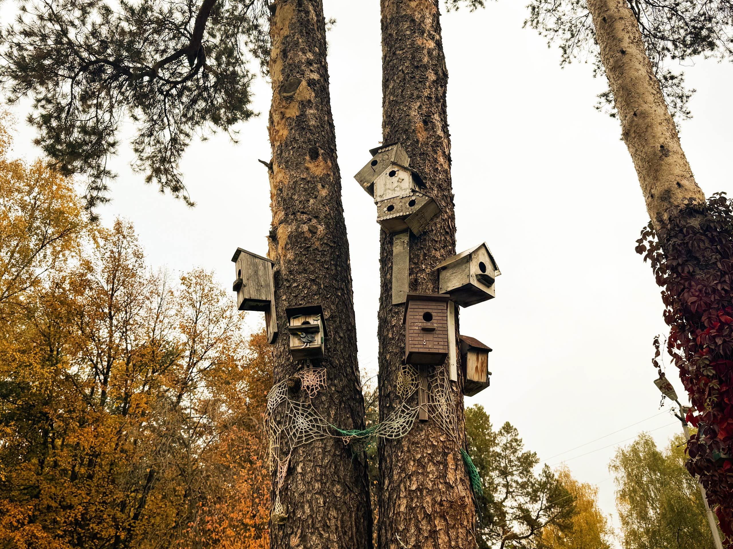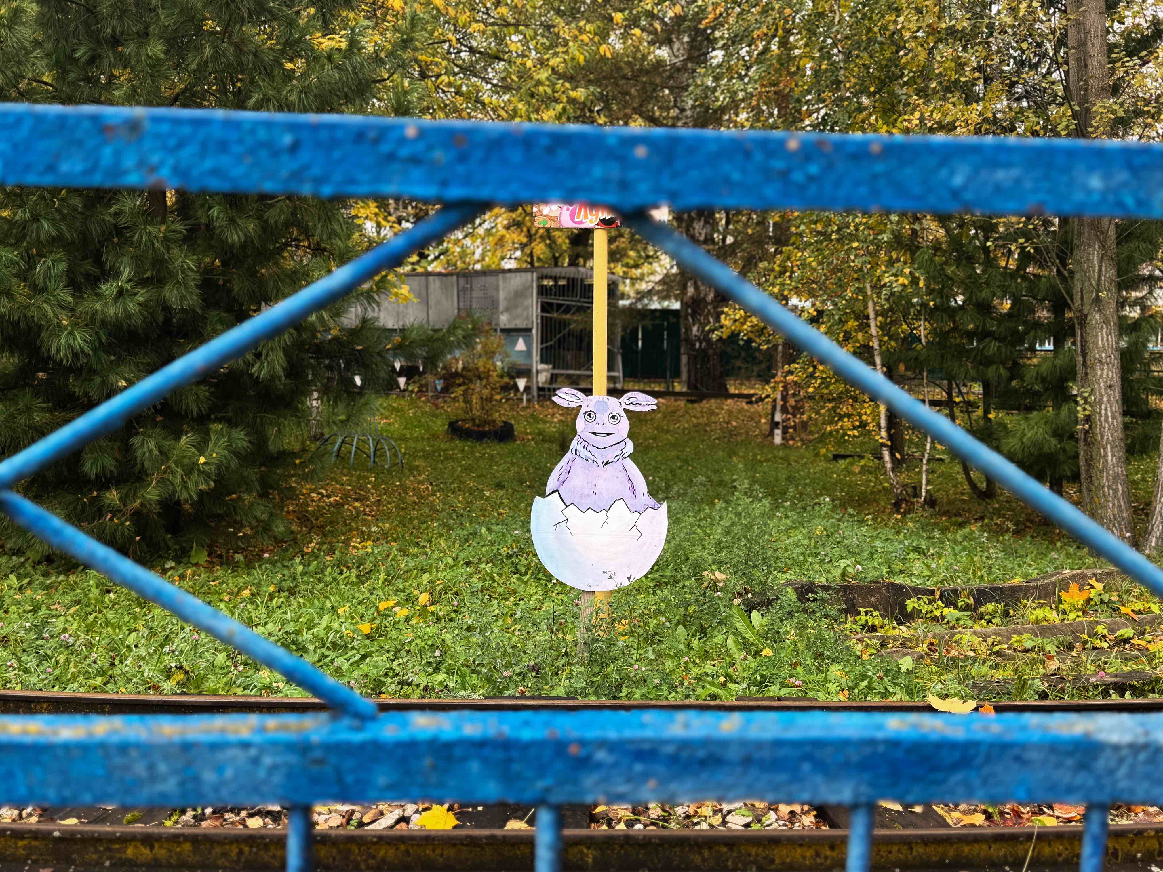 Утром пошли гулять в местный парк с атмосферой советской разрухи — почему-то она меня манит. Большая часть аттракционов помечена табличками «Не работает», но даже облезлое колесо обозрения на фоне золотых листьев выглядит как красивая декорация.