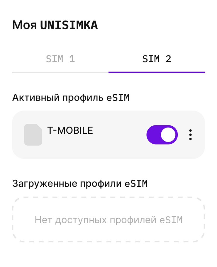 Есть варианты подешевле. Например, Switch by Plan B стоит примерно 2 000 ₽. Также в продаже попадаются зарубежные аналоги: 5ber, 9esim и eSIMme — но наличие на маркетплейсах не гарантировано. По сути и набору функций они ближе к первой версии Unisimka — сим-меню есть не у всех, но в остальном возможности такие же.