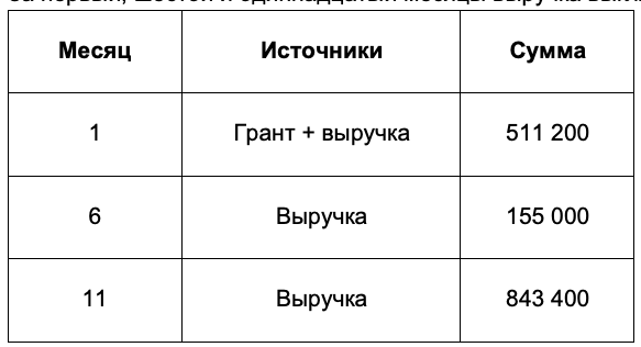 За первый, шестой и одиннадцатый месяцы выручка выглядела так: