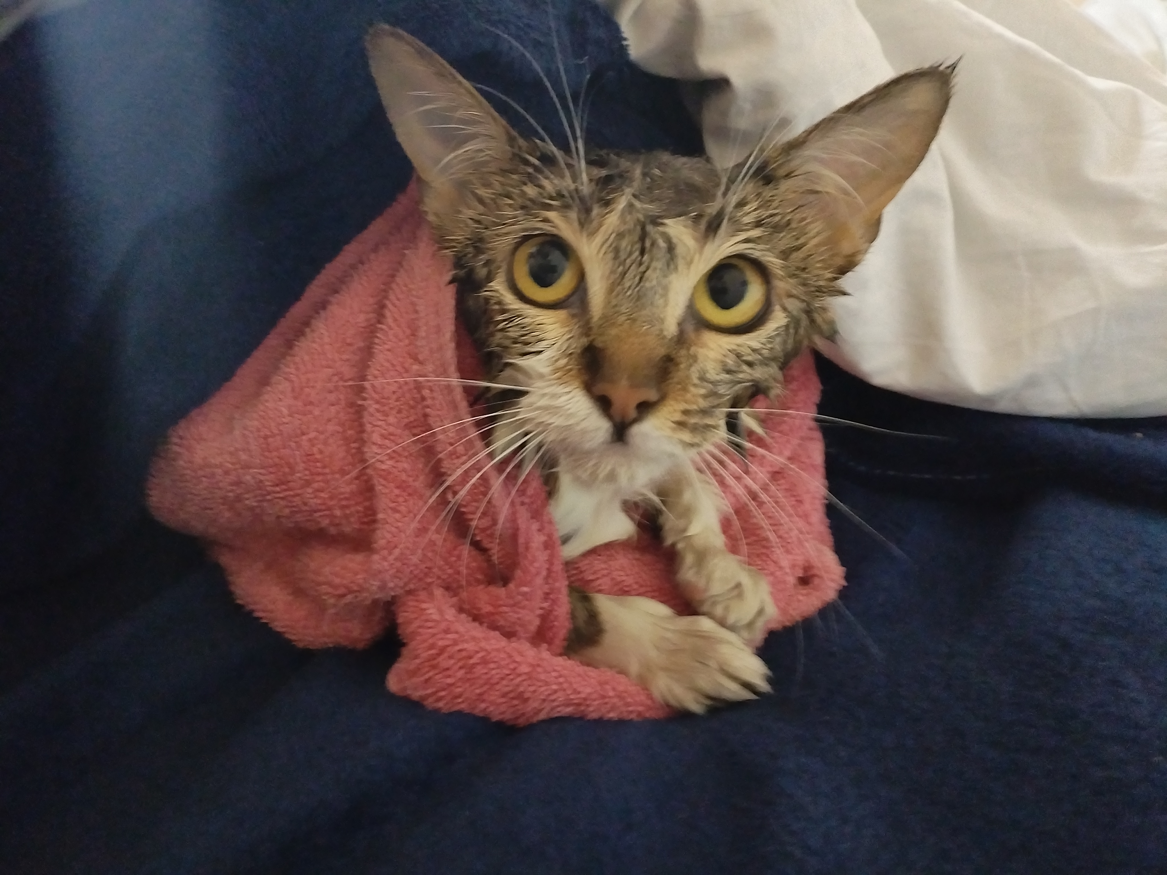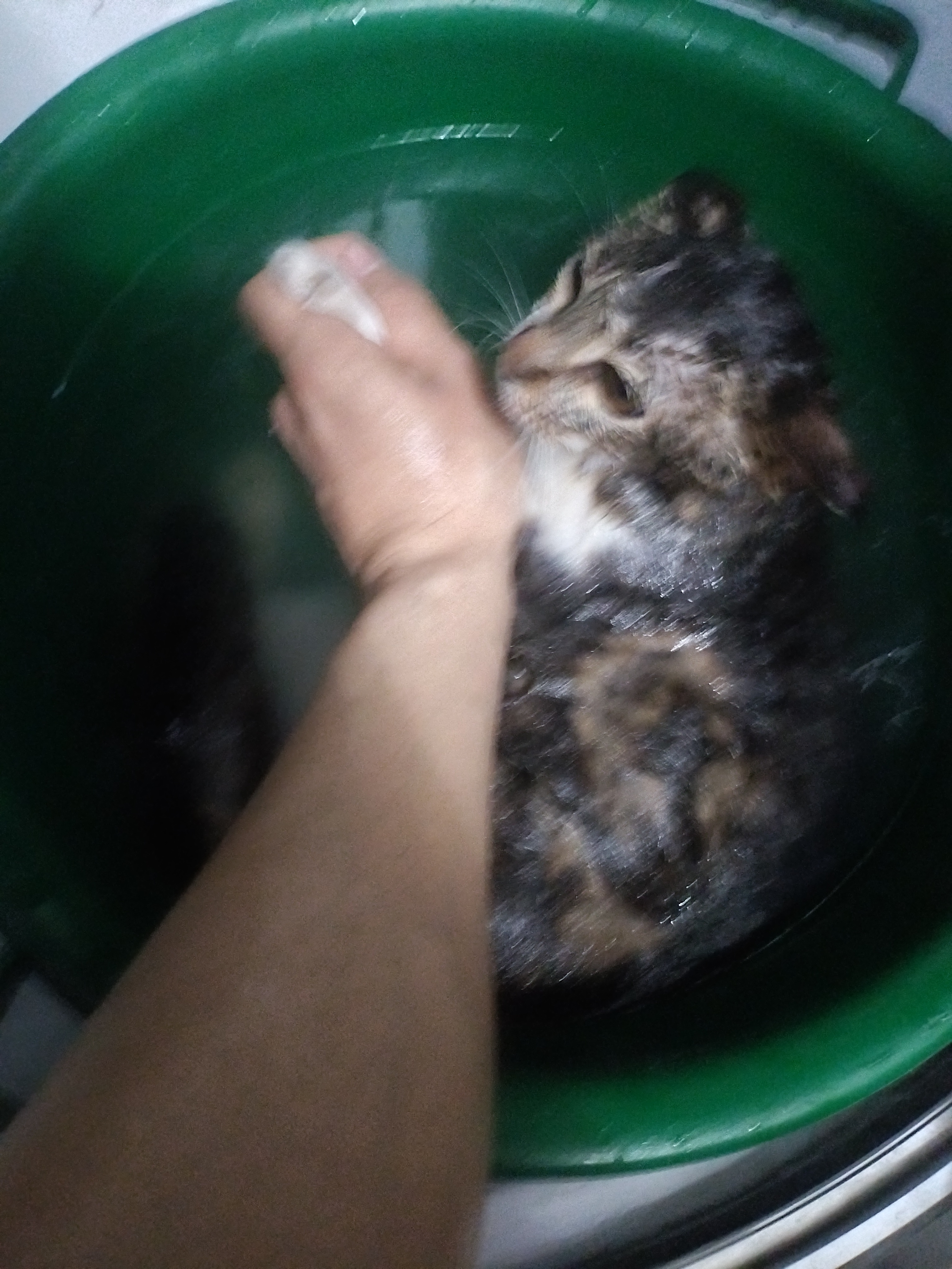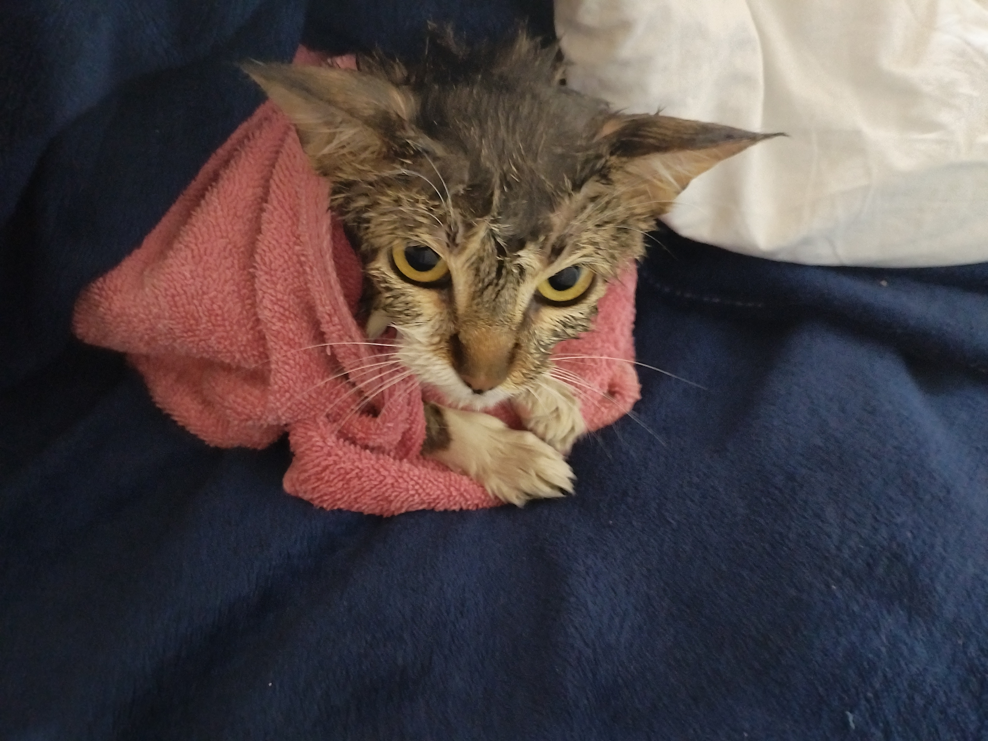 С сопротивлением купанию мыть кошку было, ну, затруднительно.