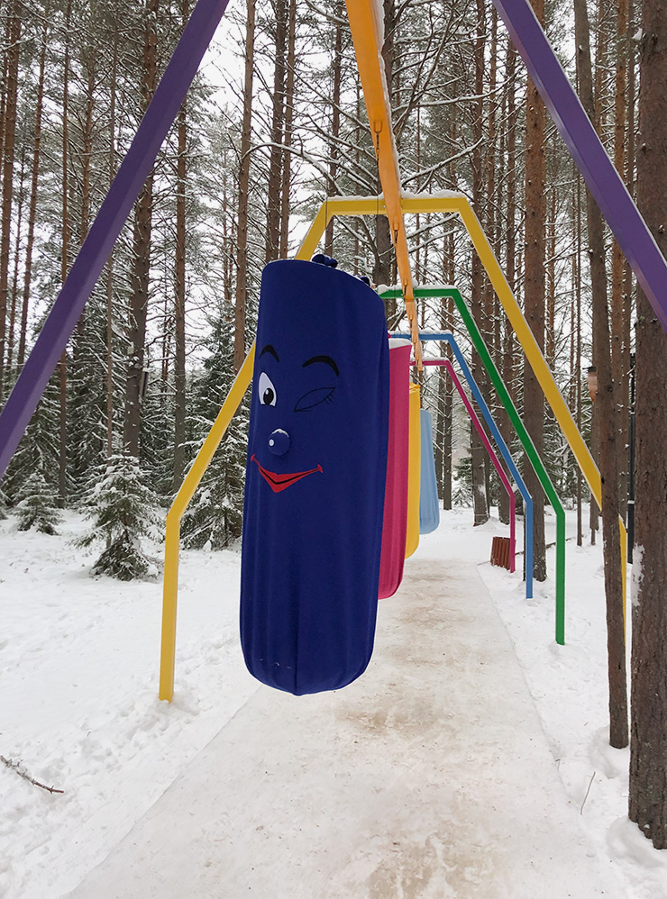 Мы не брали дополнительные программы и после экскурсии по дому Деда Мороза отправились на прогулку по чудесной территории. Гулять там — одно удовольствие. Есть несколько детских площадок, но они, как правило, пустовали: вокруг много куда более интересных развлечений.
