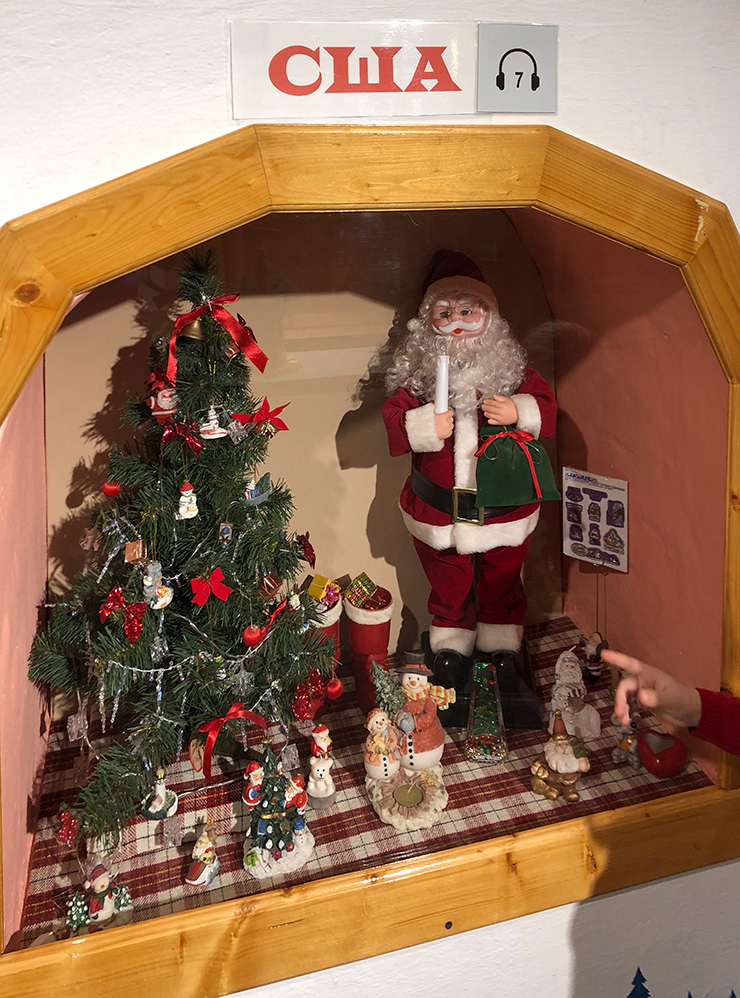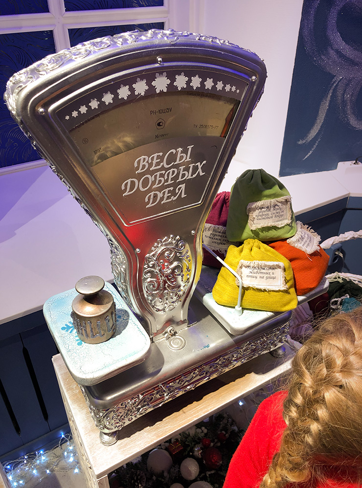 Городская резиденция Деда Мороза находится по соседству с почтой. Попасть туда можно только в составе экскурсии «Путешествие во времени» — она проходит примерно каждый час. Билет стоит от 350 ₽ для взрослого.