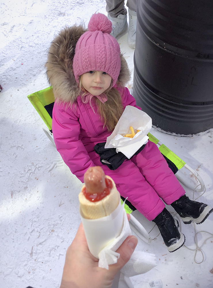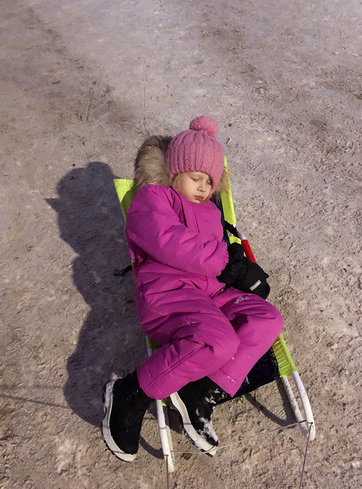 Очень важна обувь — обычные ботинки для города не особо подойдут. У меня были унты и на смену угги. У дочки — валенки и непромокаемые теплые сапоги. Запасная пара обуви — это обязательно: ноги от обилия снега и долгого нахождения на улице иногда промокали, и за одну ночь обувь не всегда успела высохнуть, даже со специальными сушилками.