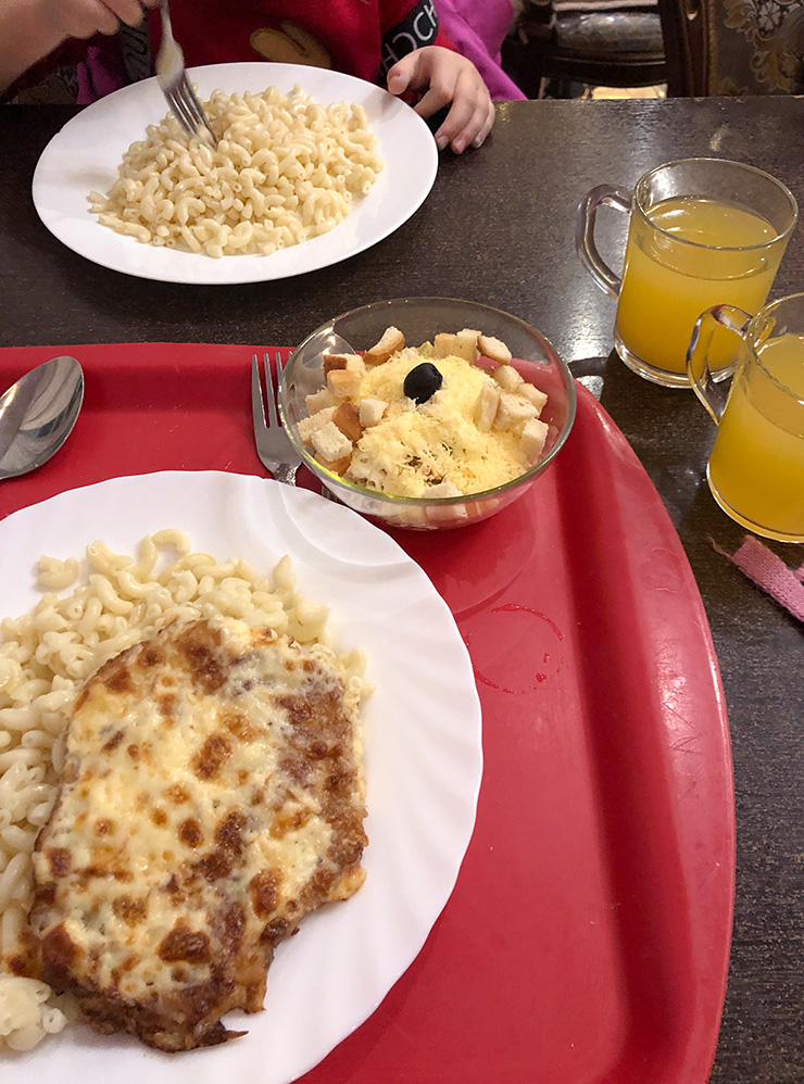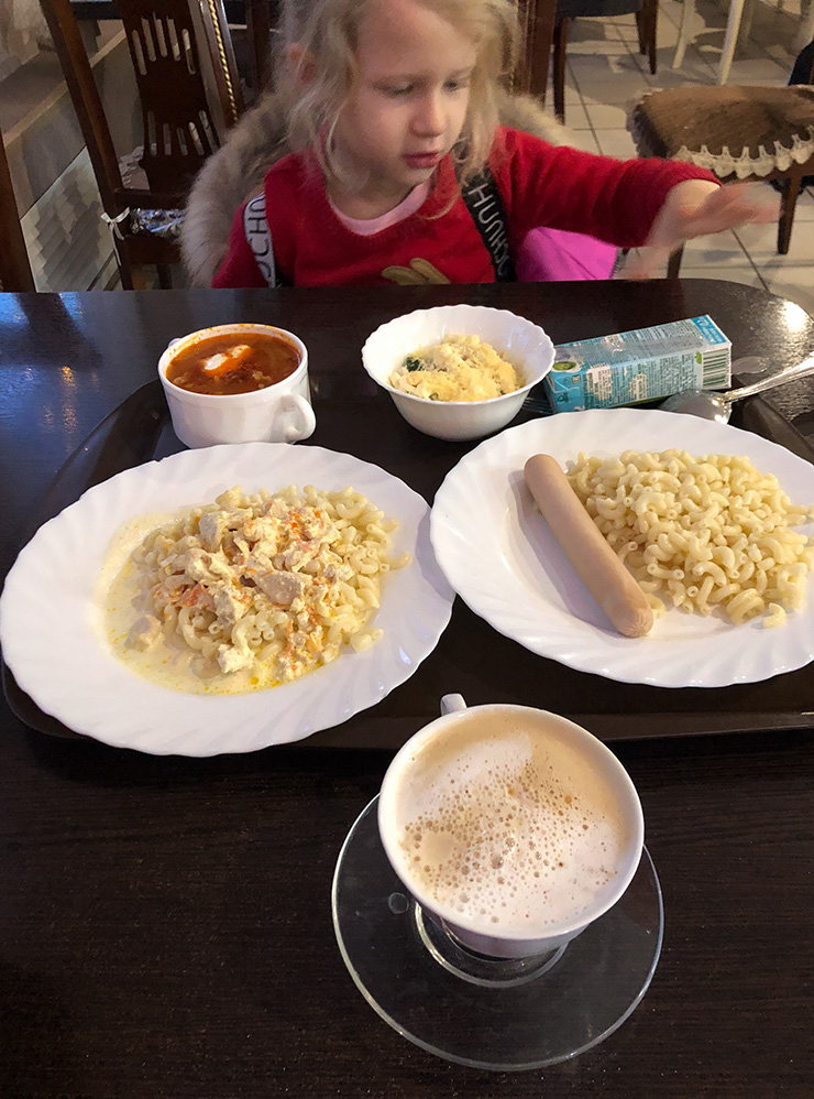 Еще нам понравилось кафе «Городок»: порадовали и еда, и обслуживание. Напомню, дочка всегда активничает: в очереди нырнет под раздачу, пробежит кружок-другой по залу и все в таком духе. Не все окружающие это принимают, но тут нам было комфортно: девушка-кассир была максимально приветливой.