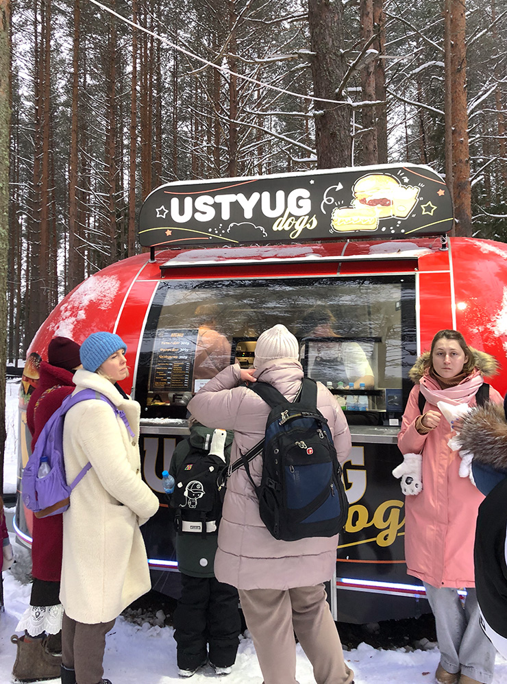 Несмотря на сложности с кафе в усадьбе, голодными точно не останетесь: на территории несколько фуд-вагончиков, а в домиках продают чай и пирожки.