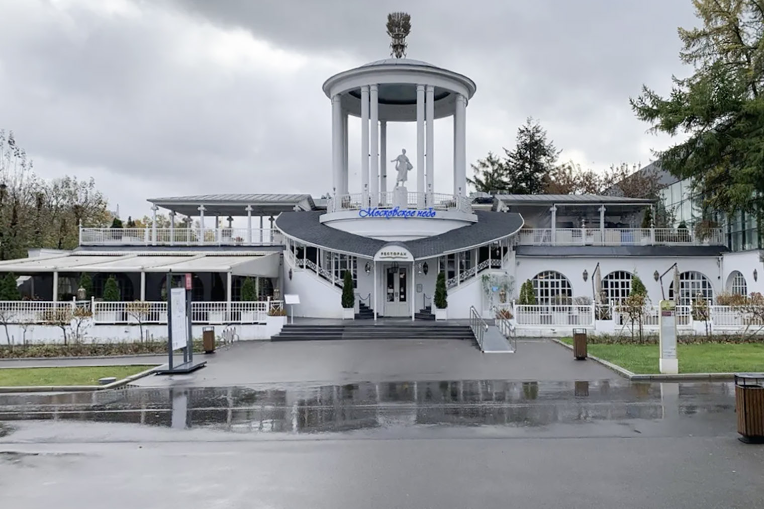Ресторан «Московское небо» расположен в историческом павильоне «Главкондитер» 1954 года постройки. Главная особенность здания — ротонда, в центре которой скульптура «Девушка с виноградом» Марианны Ярославской . Интерьер с атмосферой 1950-х годов. В меню — советская кухня в современном прочтении .