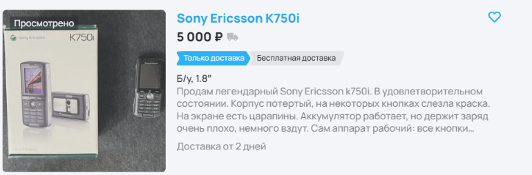 Фишек у аппарата хватало: MP3-плеер с нормальным звуком, карты памяти на 2 гигабайта (целых 2 гигабайта, Карл!), и батарея, державшая 9 часов разговора. Сейчас такой красавец на Авито стоит от полутора до восьми тысяч, в зависимости от состояния и наличия коробки.