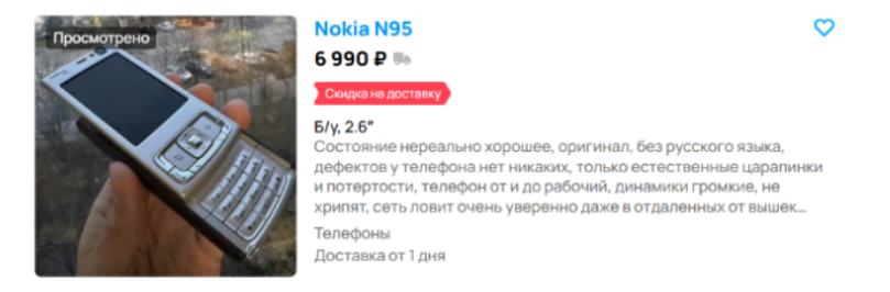 Сейчас за рабочую N95 просят от 2.5 до 7.5 тысяч. Хотя для коллекционеров некоторые версии до сих пор в цене.