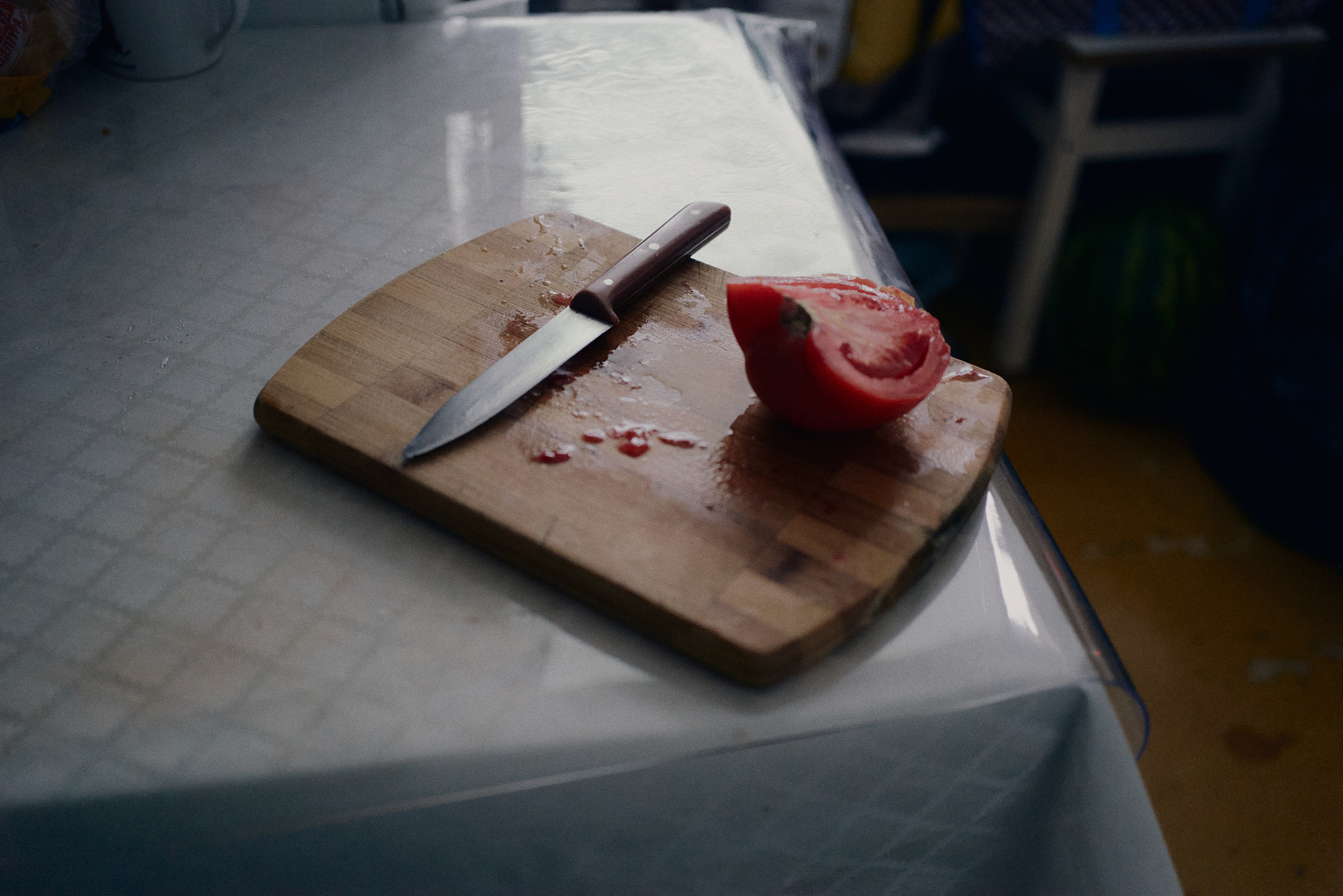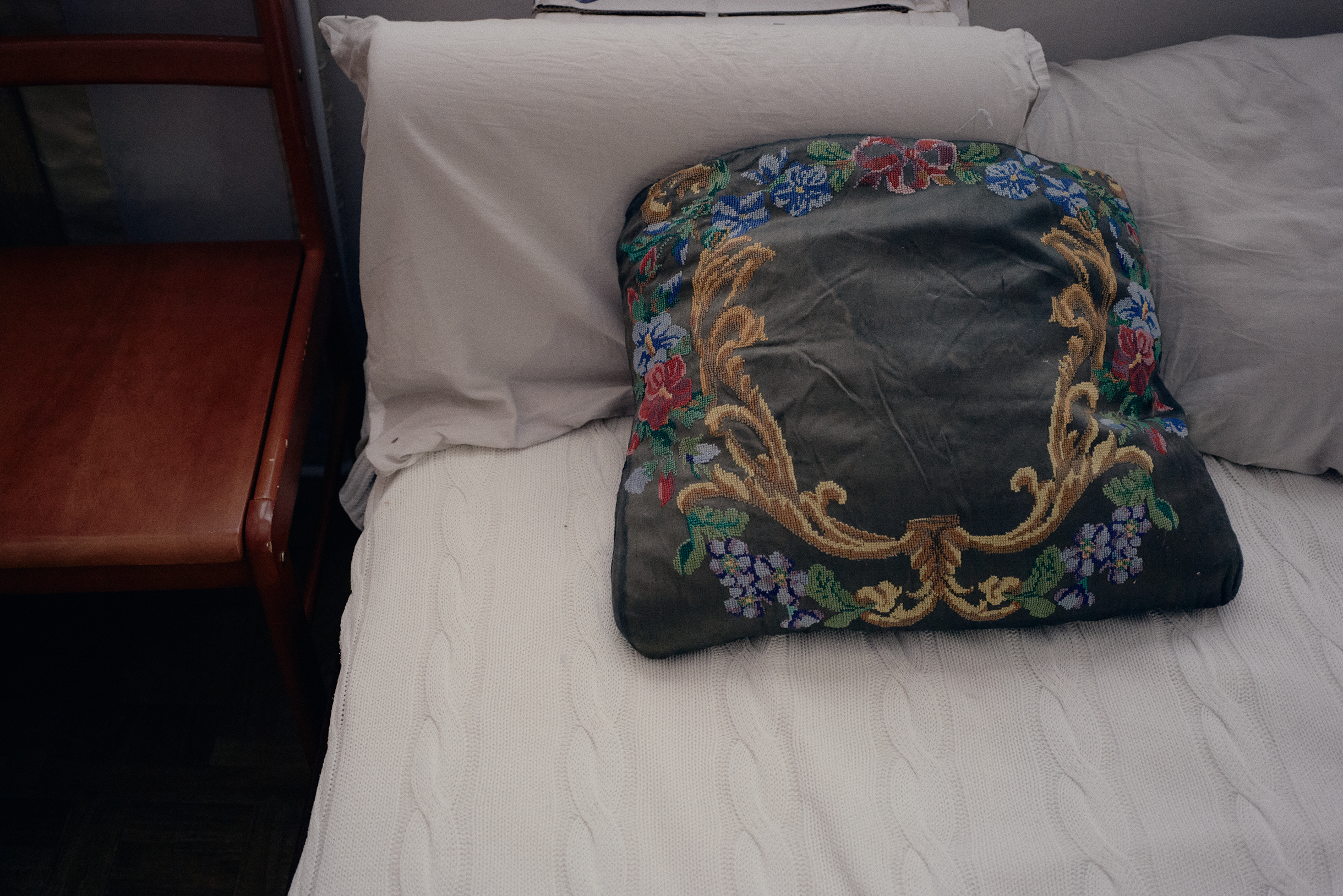 Побросали в машину все, что придумали. Среди прочего я схватила старинную подушку с вышивкой, которую подарила бабушке родственница. В машине уже лежал плед — приданое от бабушки к нашей свадьбе. На поясе у меня был пуховый бабушкин платок — повязывала его, чтобы не простудить почки в подвале. Еще взяли один нож из набора, который подарил нам к свадьбе дедушка, — он работал инженером на заводе и сделал их у себя в цеху.