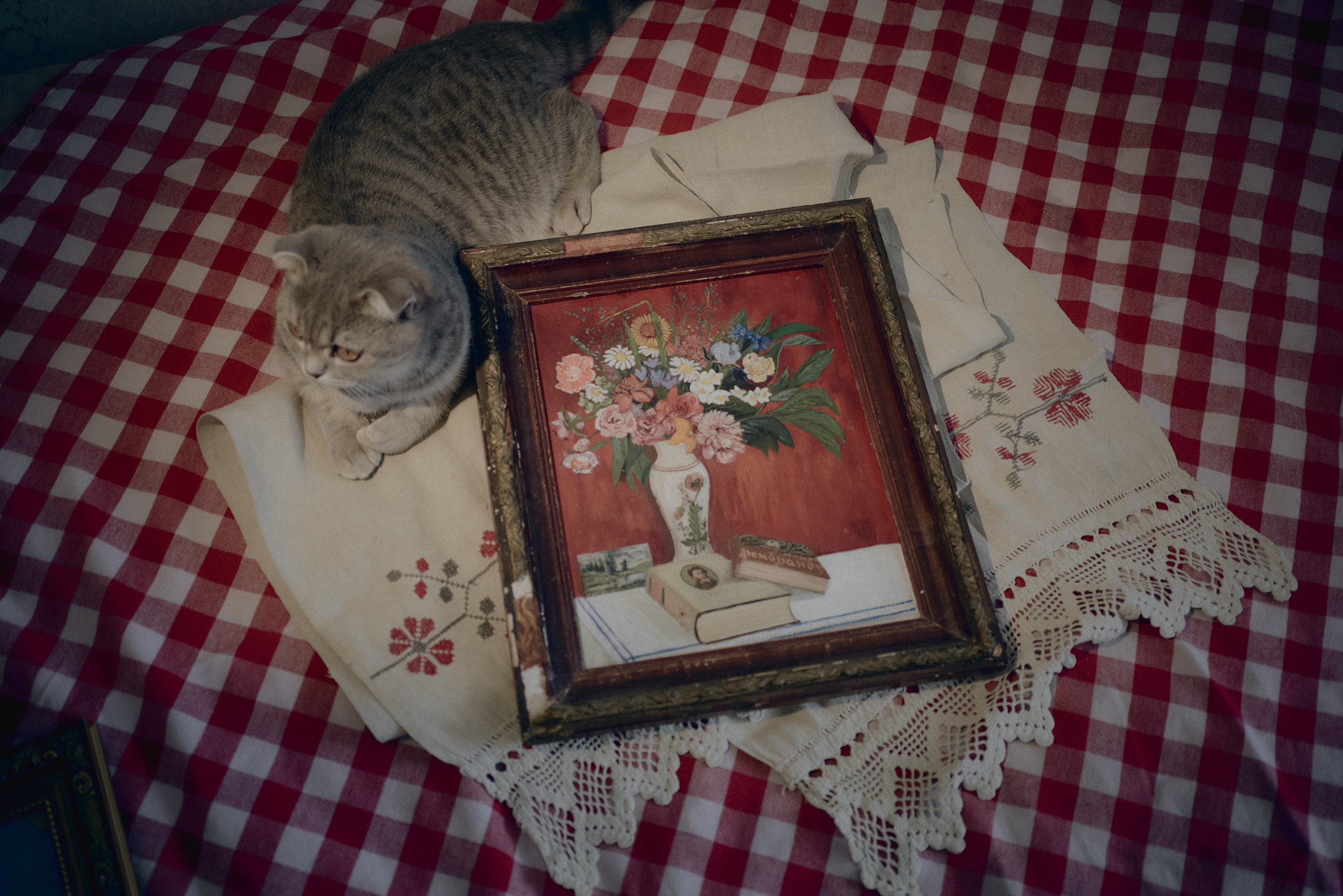 Дочь постоянно спит с зайцем и на подушке с вышивкой. Эта вещь напоминает ей прабабушку — они души друг в друге не чаяли. Пледом и ножом пользуемся в быту. Пуховый платок я время от времени нюхаю — он пахнет домом. Убрала его в пакет, чтобы он не впитывал другие запахи. А еще я храню засохшую землю с подошв обуви в желтой коробочке от «Киндер-сюрприза» — землю из дома.