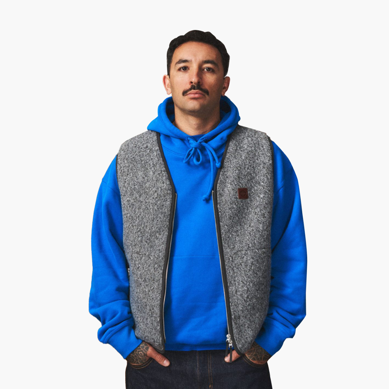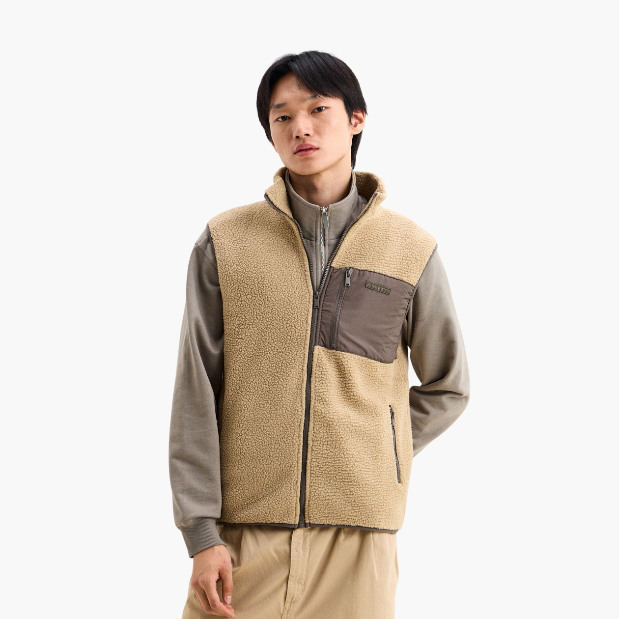 Флис — отличный материал для межсезонья: мягкий, теплый и прочный. В +10 °C такой жилет можно смело носить как самостоятельную верхнюю одежду. А когда похолодает, его можно носить под пальто или куртку.