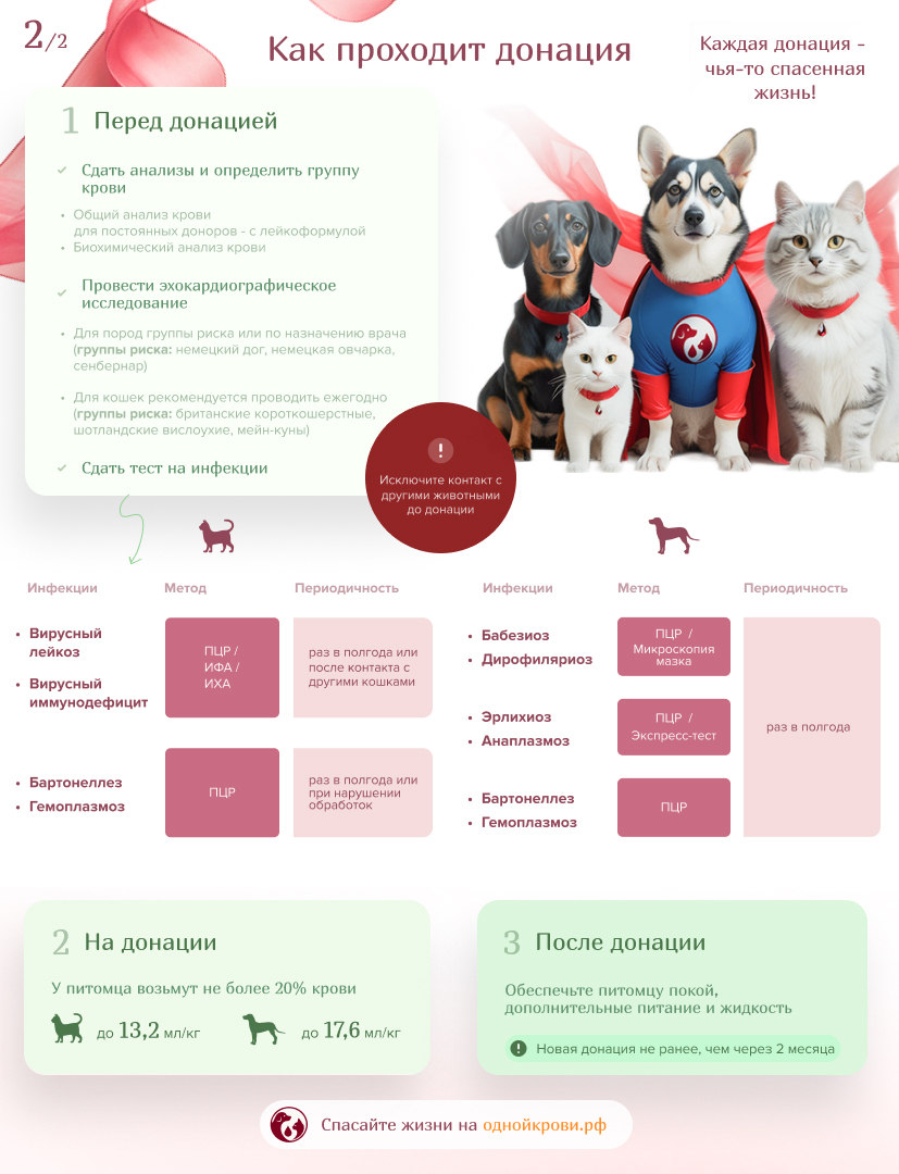 - Сдать кровь. После процедуры питомец быстро восстановится, а вы поможете спасти чью-то жизнь.