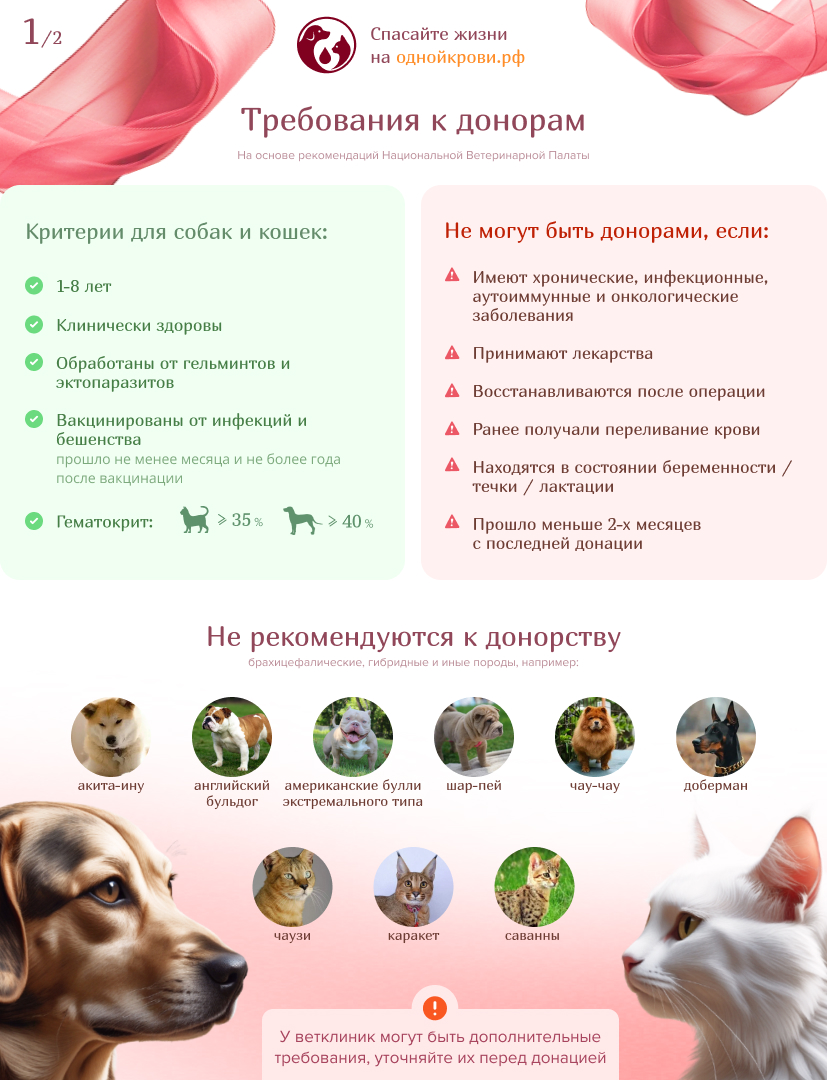 При этом многие владельцы считают своих питомцев непригодными для донорства, в то время как стать донорами может гораздо больше животных.