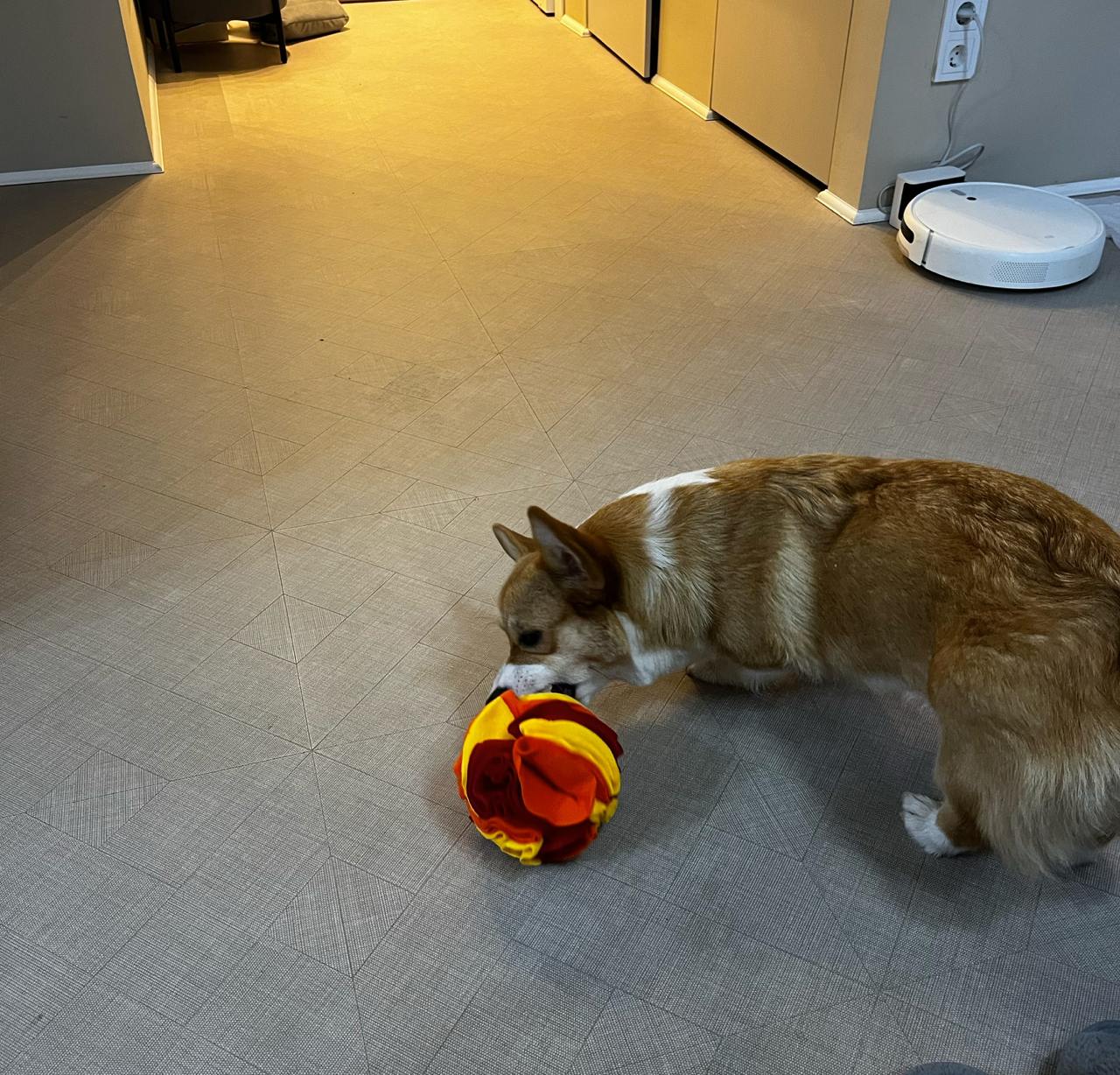 Я давала нюхательный шар. Внутри прячутся корминки, и собака в силу пищедобывательного поведения ищет их. Эта штука полезна и для здоровых собак — можно прятать лакомства и давать нюхательную нагрузку