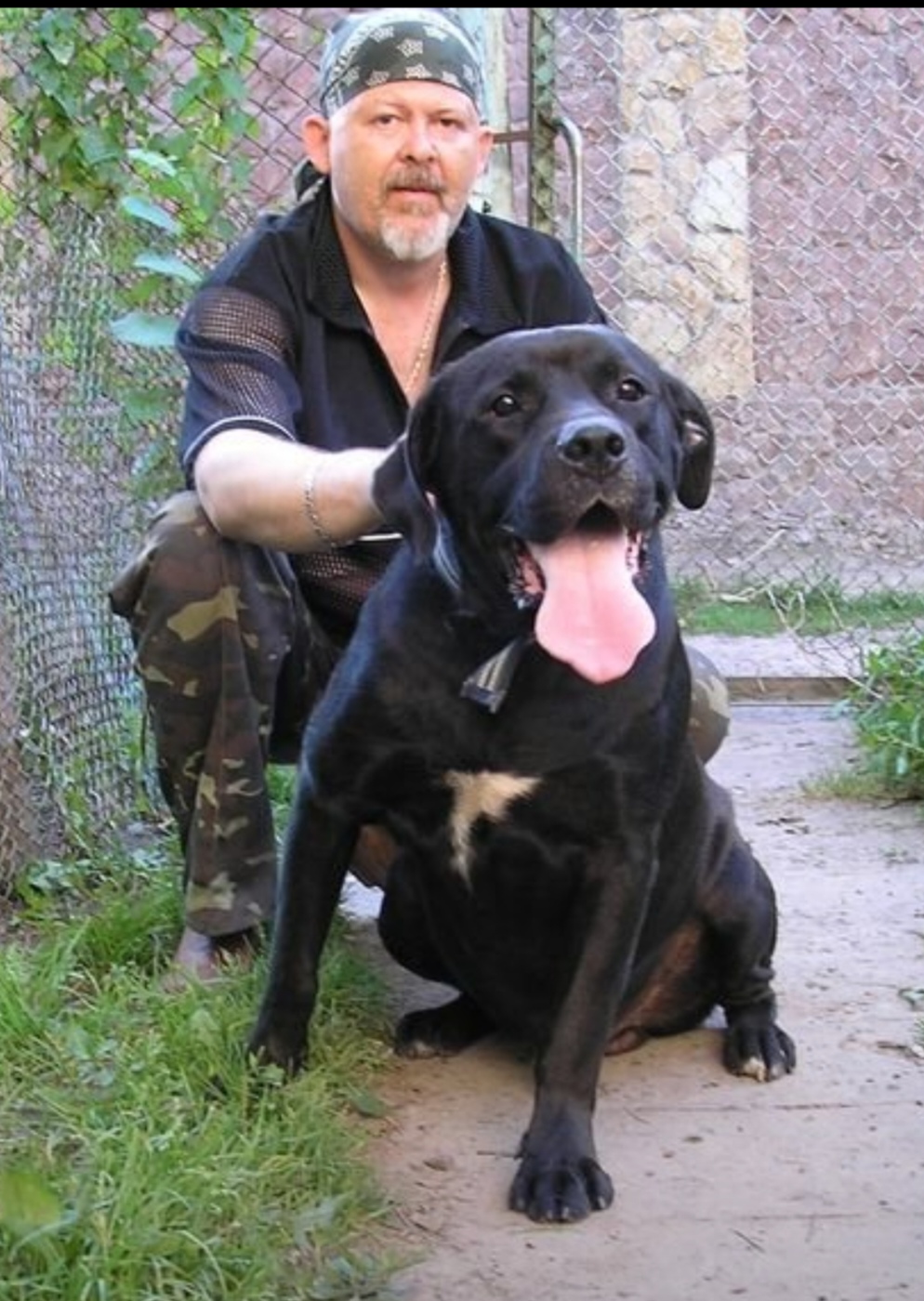 Собаками занимаюсь с 1995 г., но фотографий спасенышей — найденышей практически нет. В 2010 г. на автобусной остановке (не Москва) остановился джип, из котого выбросили вот это чёрное чудо величиной с телёнка. Полностью голая, красная, воспаленная спина. Подобрал, лечил демодекоз почти месяц. Вылечился и был пристроен добрым людям ещё через месяц. На фото — я и Джек после лечения.