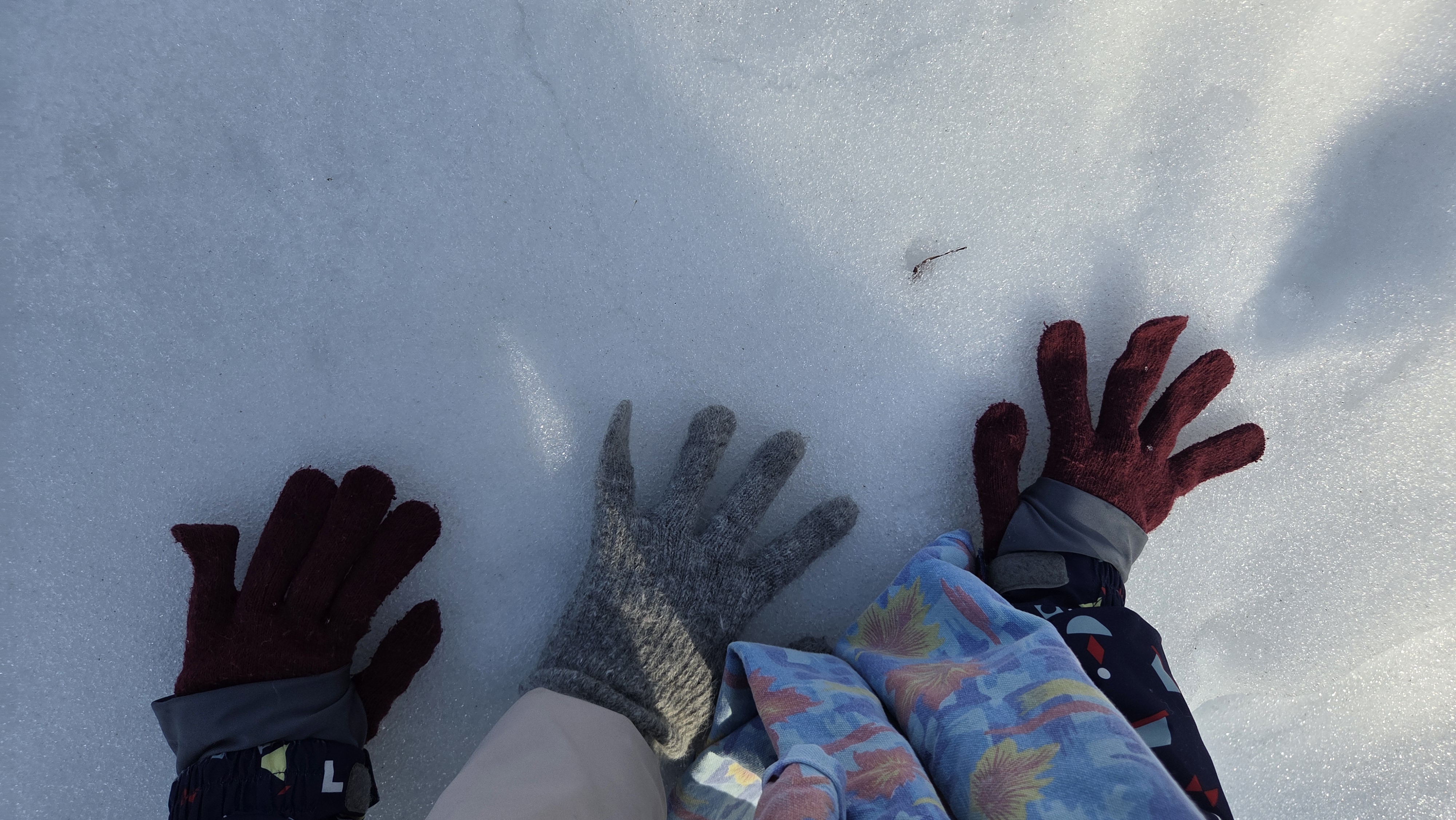 Погода была +3. Снег уже не такой белый, он подтаявший — снежок не слепить. Что-то между льдом и грязью. Наступаешь — и ноги проваливаются со скрипом в сугроб. Светит солнце, ветра нет. Весна уже близко. 😊