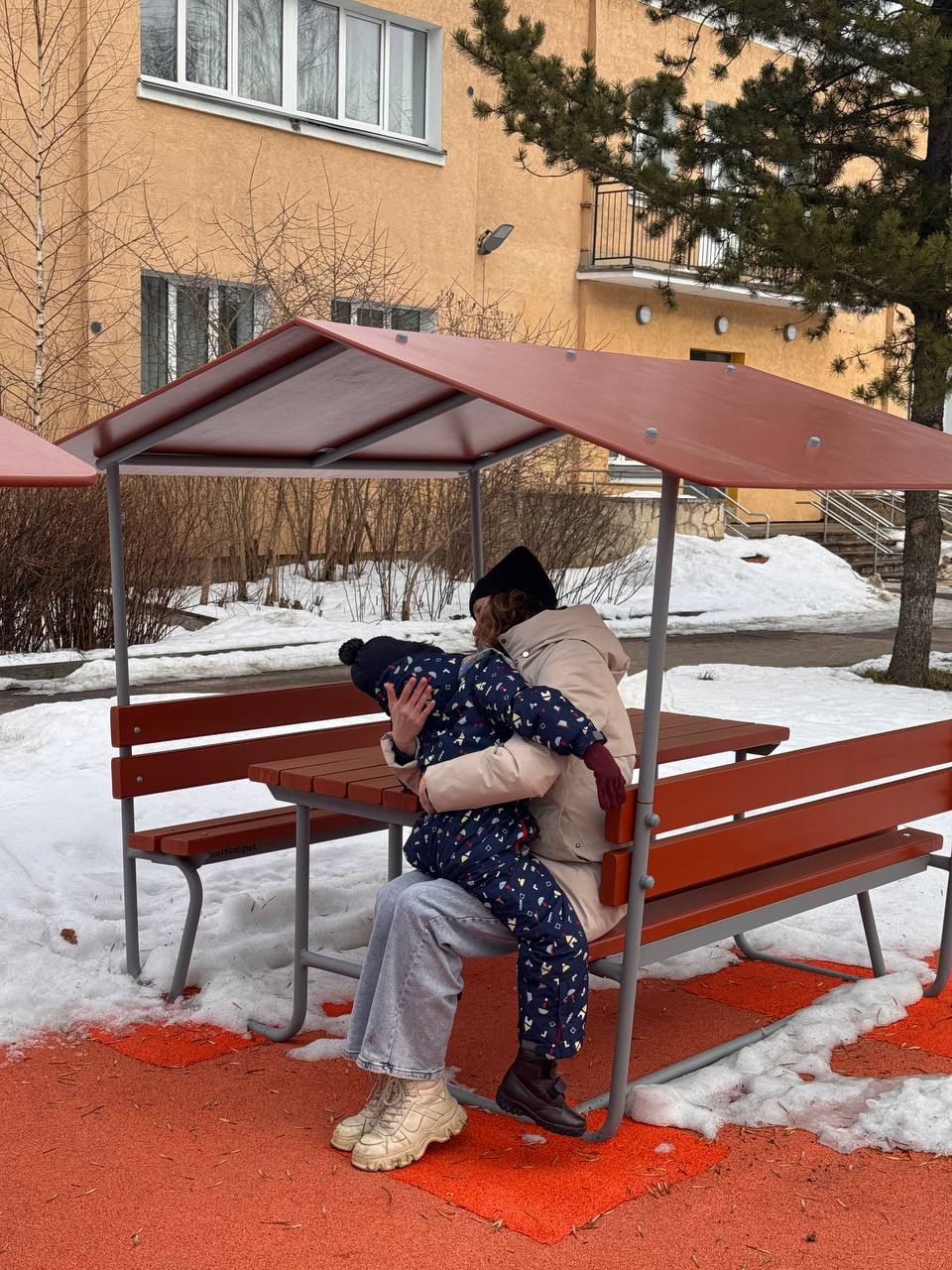 После прогулки, усевшись мне на колени, мы вместе с 3 волонтерами чистим штаны. А ребёнок довольный обнимается.🫂