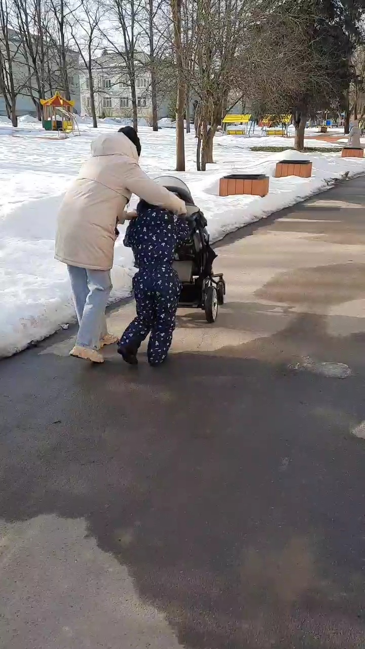 Такая реакция была на то, что ребёнок сам толкает коляску.