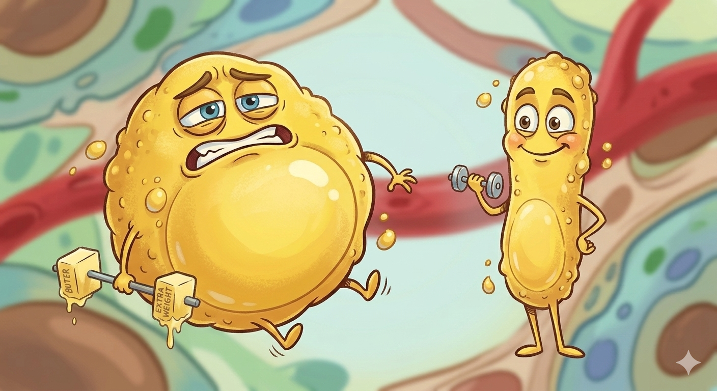 Примерно к 18-20 годам их число стабилизируется. Когда мы набираем вес во взрослом возрасте, мы не создаем новые жировые клетки. Мы просто «надуваем» старые. Адипоцит может увеличиваться в размере в несколько раз, накапливая липиды, как воздушный шарик — воду. Когда мы худеем на диете, шарики сдуваются, но никуда не исчезают.