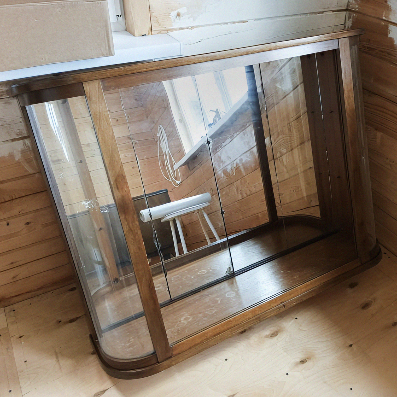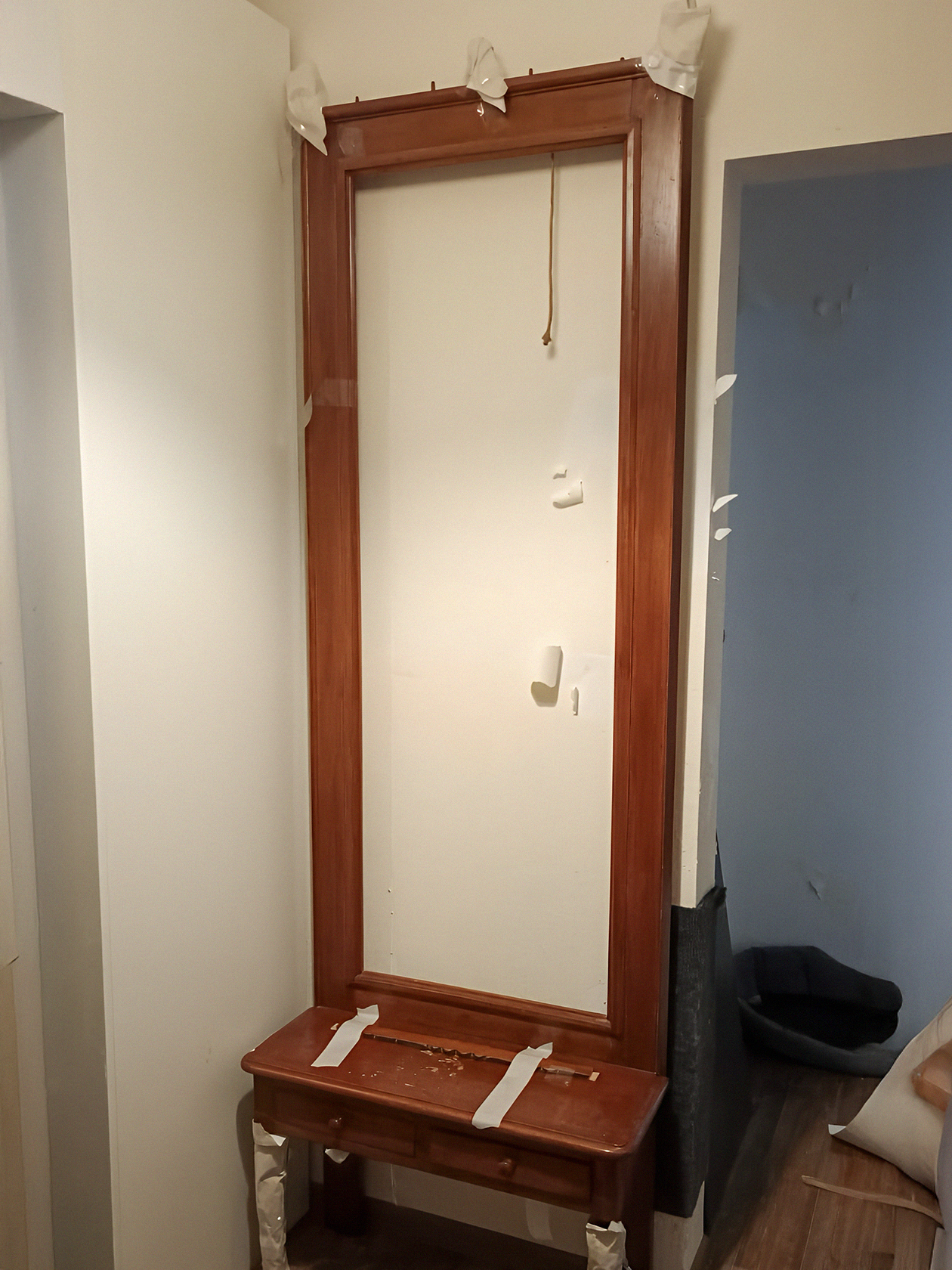 Купили на «Авито» такое вот трюмо. Его и реставрировать не надо: досталось в идеальном состоянии. Только столик сверху немного восстановить и внутри ящички подшлифовать.