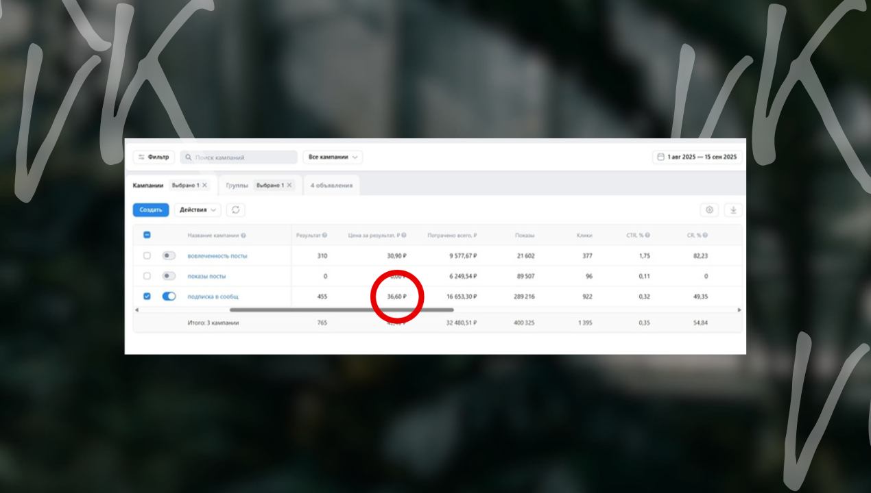 - на одном бюджете решили сразу 2 задачи: рост подписчиков в ВК + формирование базы, которая продаёт.