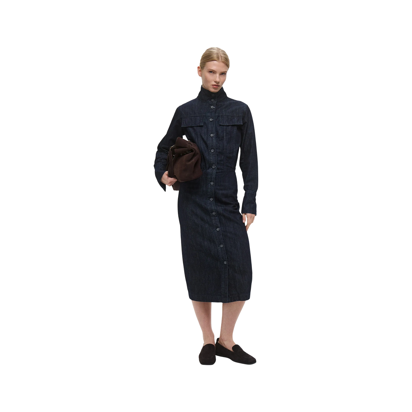 Осенью и зимой темный деним практичнее светлого — это справедливо и для джинсов, и для платья. При выборе стоит обратить внимание на детали: деним должен быть плотным, а силуэт — не слишком прилегающим. К платью длины миди легче подобрать обувь, но и короткое джинсовое платье можно стилизовать — например, с облегающим джемпером, легинсами и грубыми ботинками.