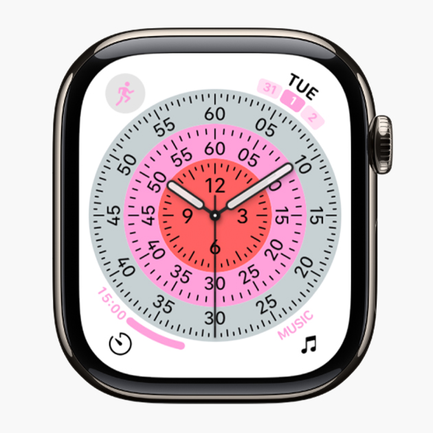Также Apple добавила циферблат, на котором часы, минуты и секунды отображаются на трех отдельных шкалах. При нажатии на каждую она увеличится в размере.