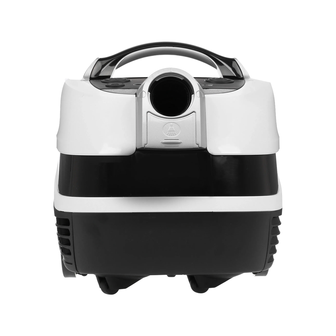 Пылесос подходит для комплексной уборки: сухой, влажной и сбора пролитой жидкости. Аквафильтр задерживает мелкие частицы пыли, в нем легче, чем в обычном пылесборнике, найти мелкие предметы. Есть турбощетка для очистки ковров и мебели, а если нужна быстрая сухая уборка, можно использовать мешок вместо аквафильтра. Производитель не указывает силу всасывания, но покупатели считают ее высокой.