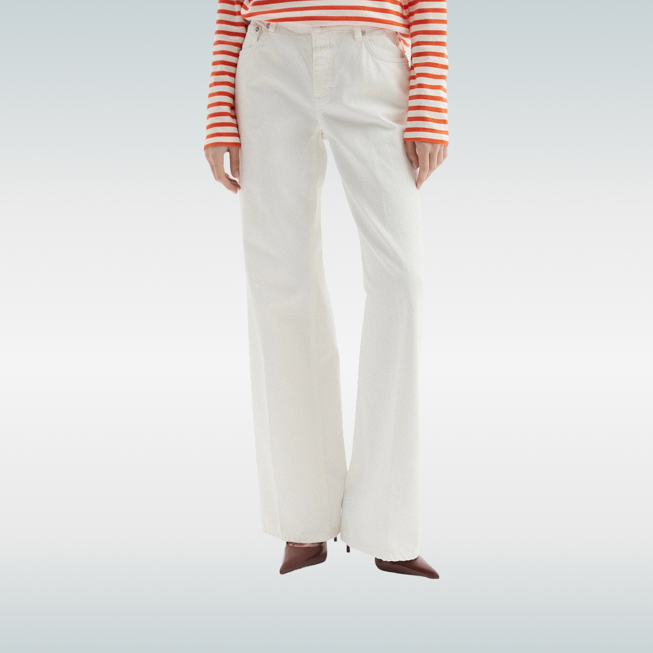 Марка основана в Барселоне в 1984 году, и за четыре десятилетия она превратилась в одного из самых заметных игроков европейского массмаркета. В джинсовой линейке можно найти базовые прямые модели средней посадки и более актуальные варианты, например с принтом в горох. Кроме классического синего денима здесь часто встречается белый, черный, бежевый и цветной — в том числе и для мужчин.