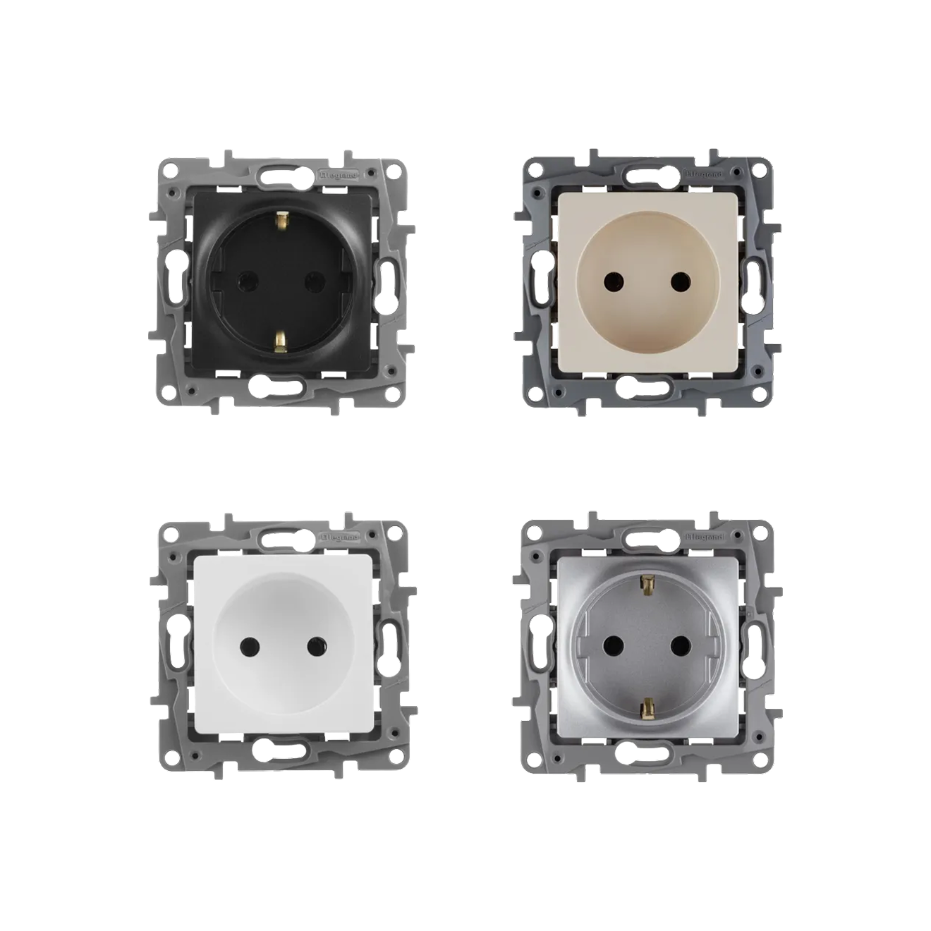 Legrand — французский бренд. Продукция производится в разных странах, включая Россию. Компания предлагает множество серий розеток на разный вкус и бюджет.