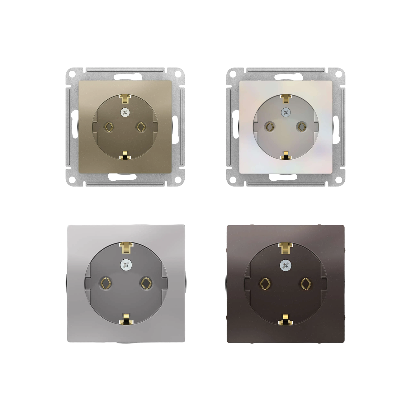 Серия AtlasDesign включает встраиваемые розетки скрытого монтажа с винтовыми клеммами и рамками до пяти постов. Линейка выделяется большим выбором материалов и цветов: механизмы доступны в 15 оттенках пластика, рамки — в пластике, стекле и металле. Часть моделей оснащена защитными шторками и крышками. Основная степень защиты — IP20, также есть версия с IP44 для помещений с повышенной влажностью.