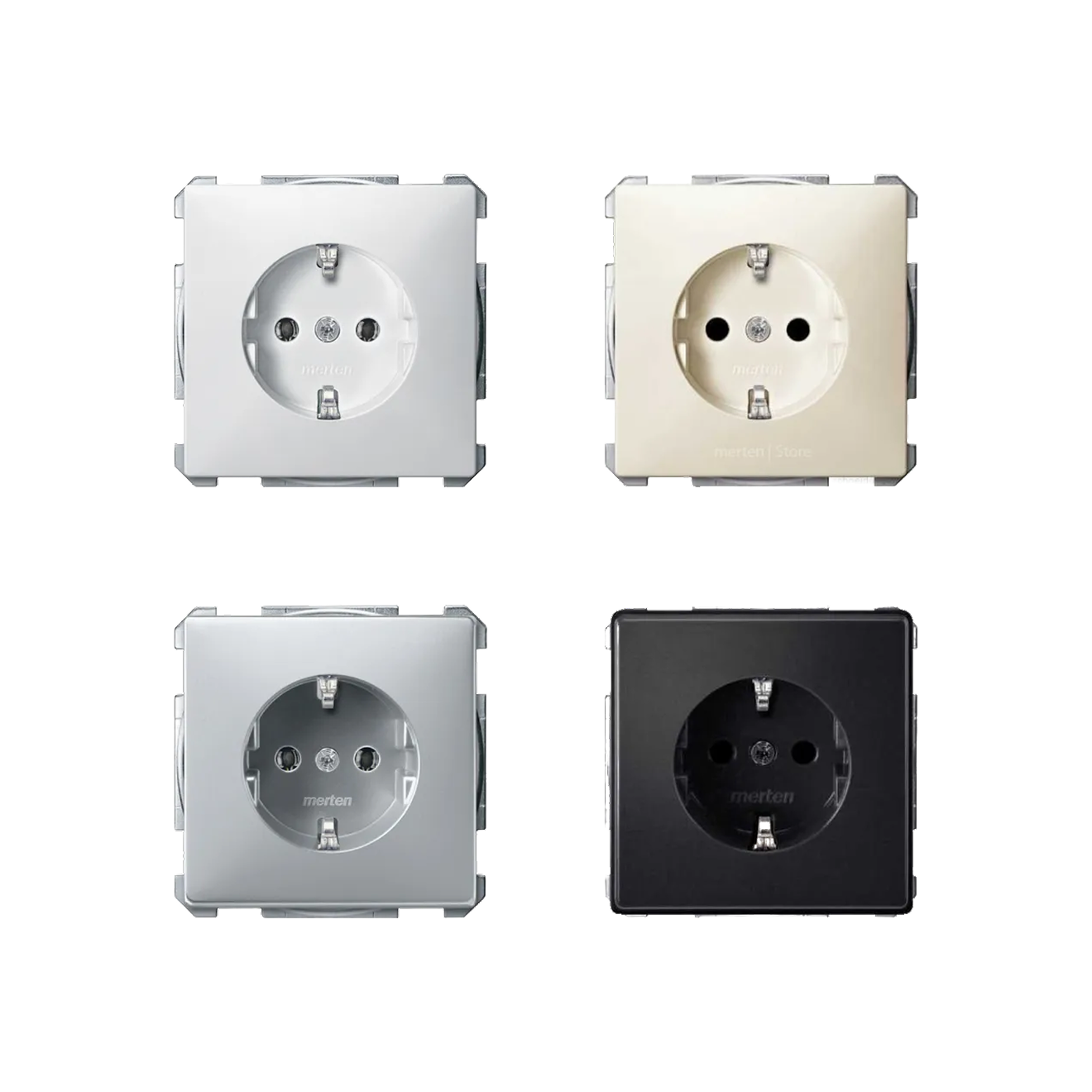 Например, серия Zenit Niessen включает розетки для встроенного монтажа с количеством постов от одного до пяти. В зависимости от модели используются самозажимные или винтовые клеммы. Механизмы выполнены из пластика и представлены в четырех цветах: антрацит, белый, серебристый и шампань. Рамки отличаются большим выбором материалов — пластик, стекло, дерево и камень — и доступны в 13 оттенках, включая белое, кофейное и жемчужное стекло, «брызги шампанского» и сланец. В линейке есть модели со степенью защиты IP20 и IP44, а также варианты с защитными шторками, крышками и без дополнительных защитных элементов.