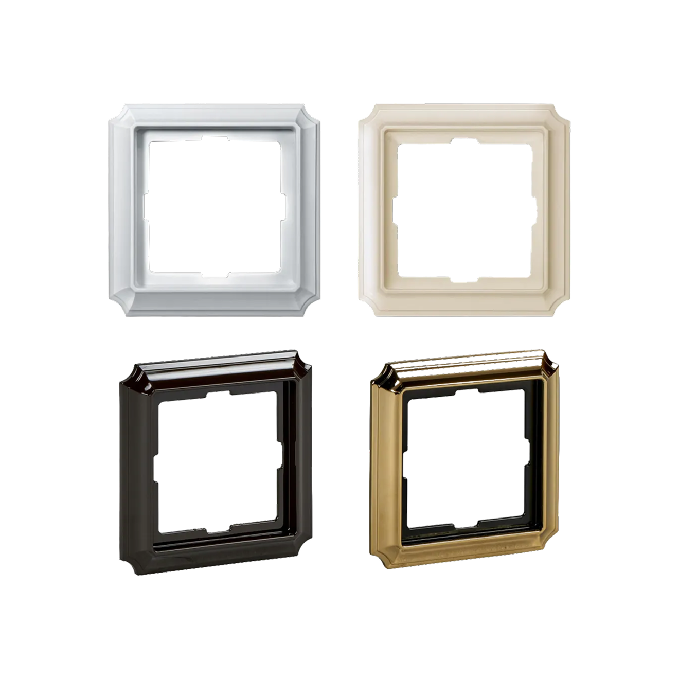 Серия Antique включает розетки для встроенного монтажа с количеством постов от одного до пяти и самозажимными клеммами. Лицевые панели и рамки выполнены из пластика и металла и представлены в схожих цветах: белом и кремовом глянцевом, античной латуни и коричневом глянцевом. Рамки также доступны в оттенке блестящей латуни. В линейке есть модели со степенью защиты IP20 и IP44, а также варианты с защитными шторками и крышками.