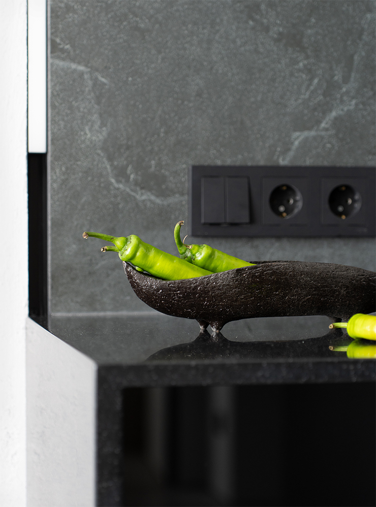 Палитра для квартиры выбрана не случайно: заказчики хотели более минималистичный и спокойный интерьер, но с характером и интересными деталями. Обратите внимание, что окна спальни и кухни-гостиной выходят на юг. Это значит, что в комнатах всегда будет много солнечного света и серый цвет будет выглядеть не таким тяжелым и подавляющим.