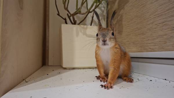 Белка Брюс и кот Беляшик сплетничали за ужином