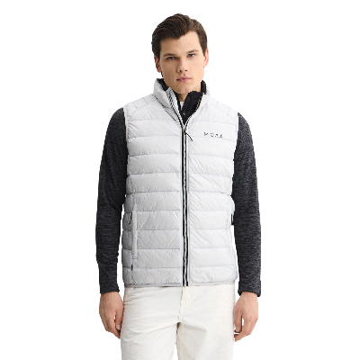 Стеганый жилет из переработанного полиэстера сохраняет тепло в холодную погоду, а воротник-стойка защищает шею от продувания