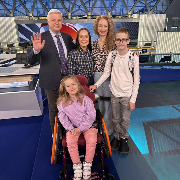 В мае 2025 года мы провели в Москве два замечательных дня. Добрались на своей машине, а проживание оплатил фонд. В первый день руководители Первого канала провели для нас экскурсию по «Останкино». Ане показали, как снимают эфир «Вестей» и переключают рекламу, разрешили посидеть на месте диктора новостей и прогноза погоды. На память подарили новогодний шар с символикой телеканала.