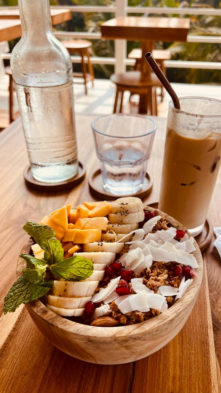 Например, завтрак в хорошем кафе — 3500 рупий (боул + кофе) ≈ 875 рублей.