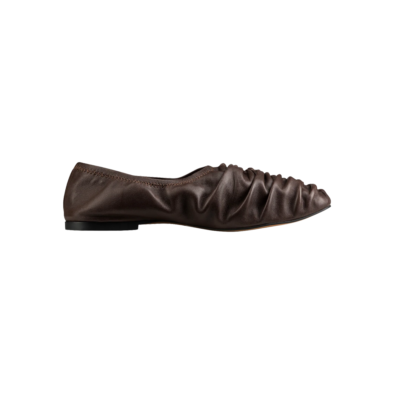 Очередная необычная интерпретация балеток — без подкладки и с драпировкой. Нам такой фасон напоминает носки, и, судя по всему, такими они и задумывались: мягко облегающими ступню и невесомыми