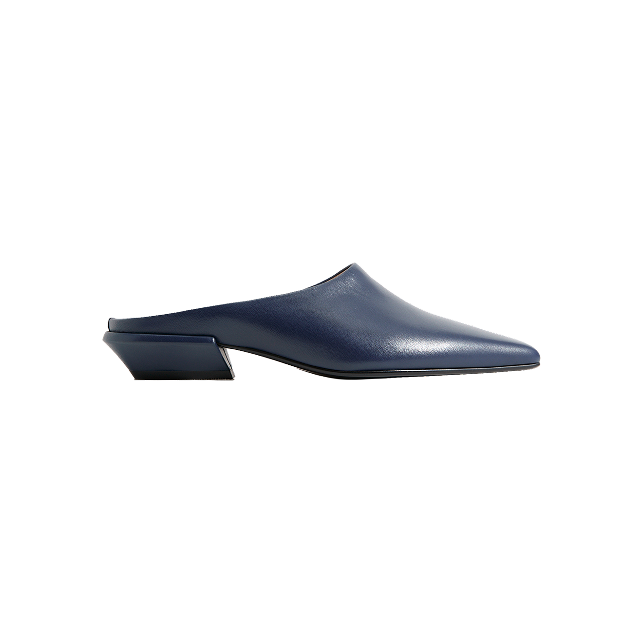 Темно-синий цвет — редкий гость в обувном гардеробе, поэтому мы не смогли пройти мимо этих мюлей. Также нас покорили их трендовая форма и несуществующий каблук: отличный выбор, если даже на каждый день вы ищете особенную обувь