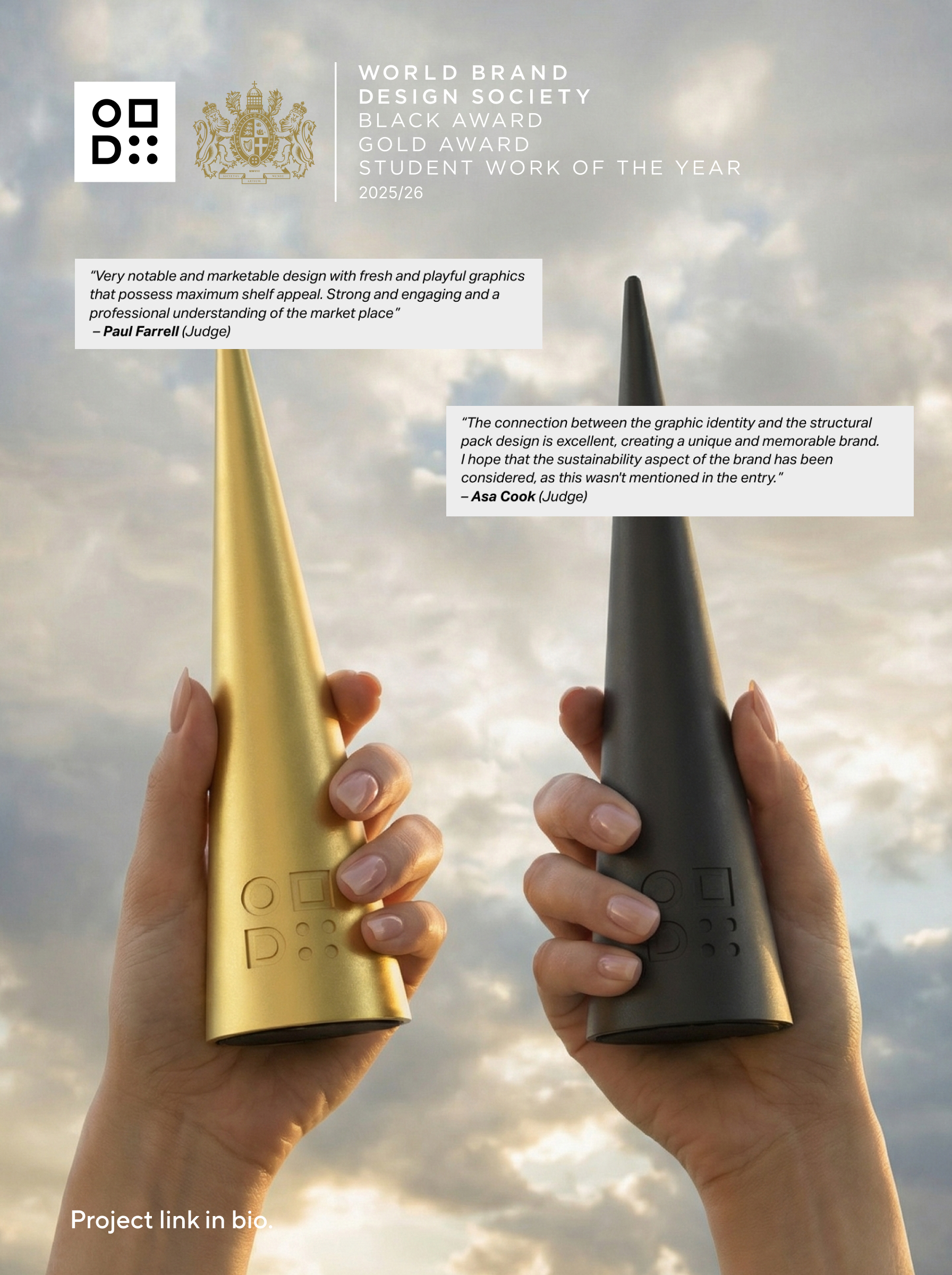 Итого мой проект Йогурт от Мэллоу выйграл 3 награды: Black Award, Gold Award, Best Student Work of the Year. И стипендию в размере 2000 £.